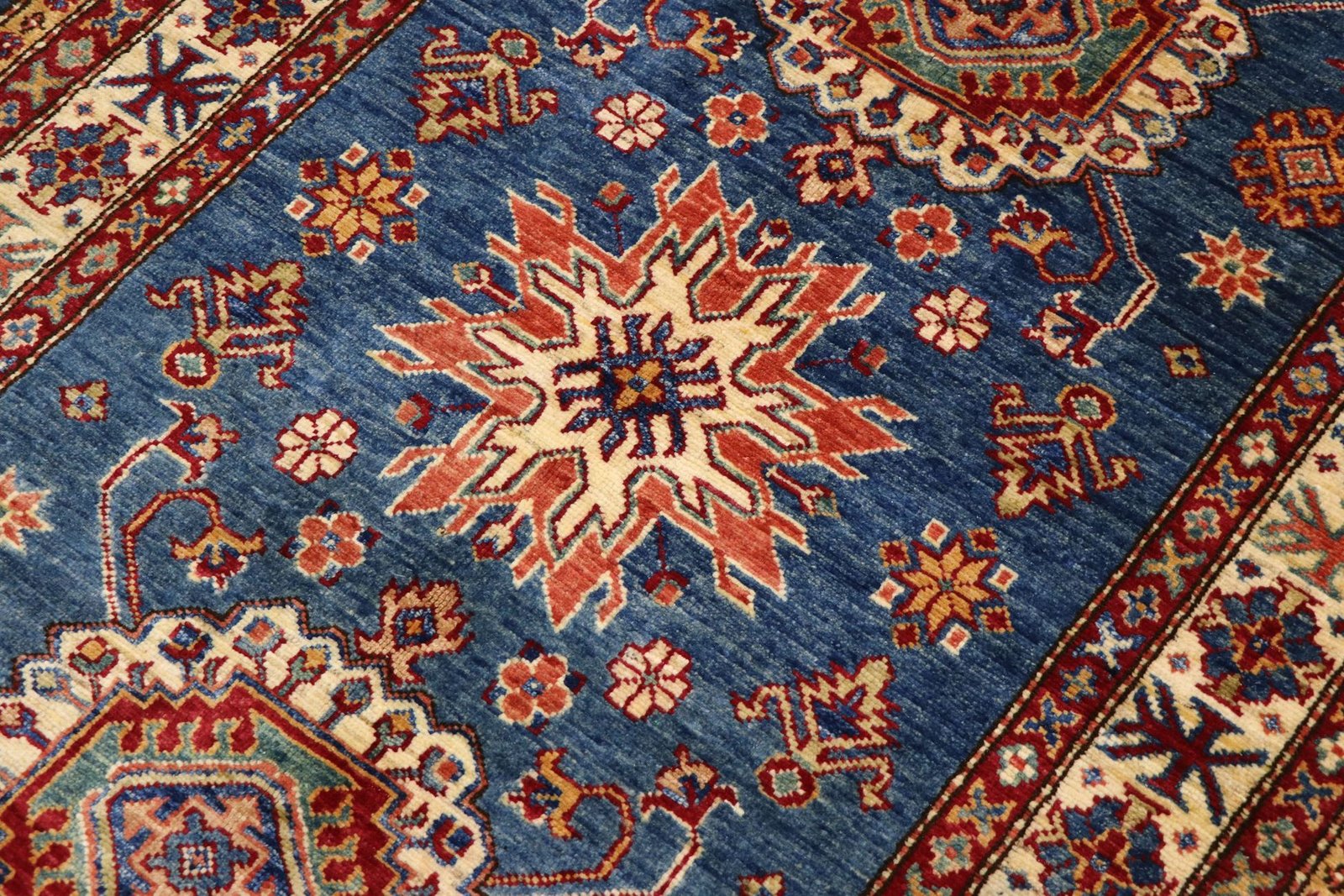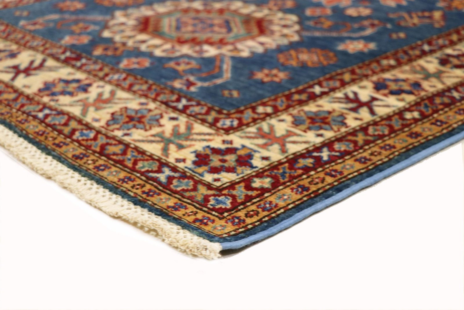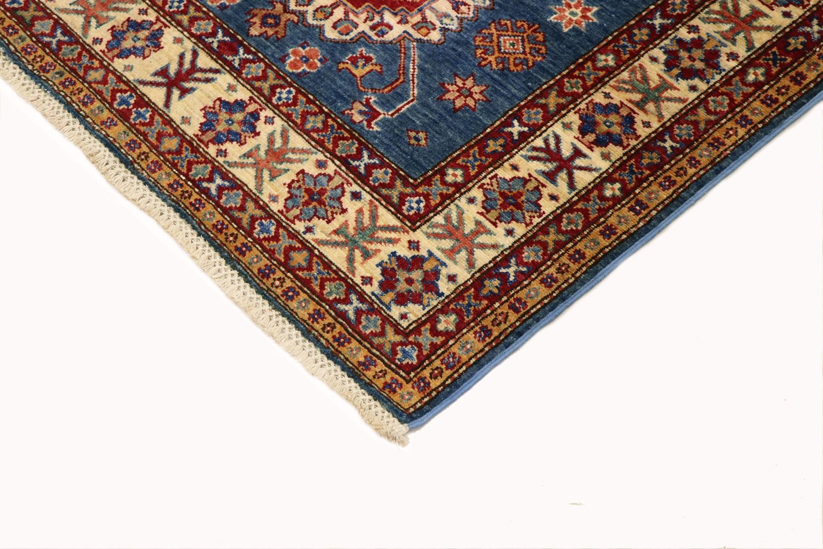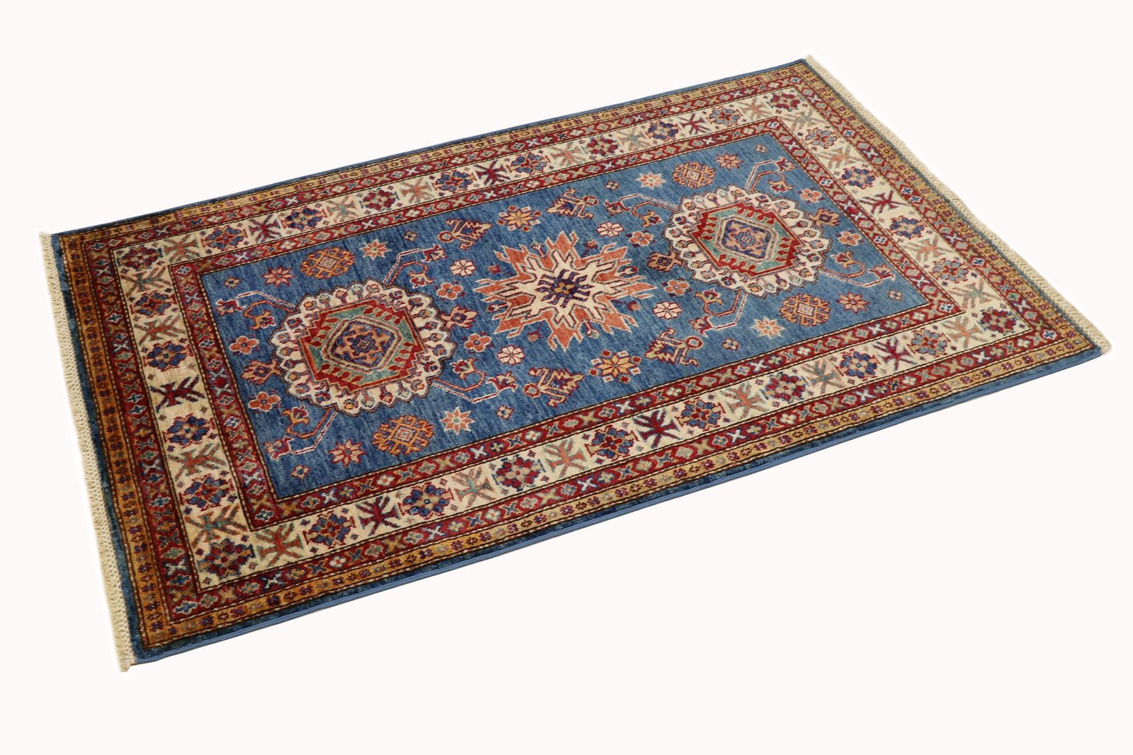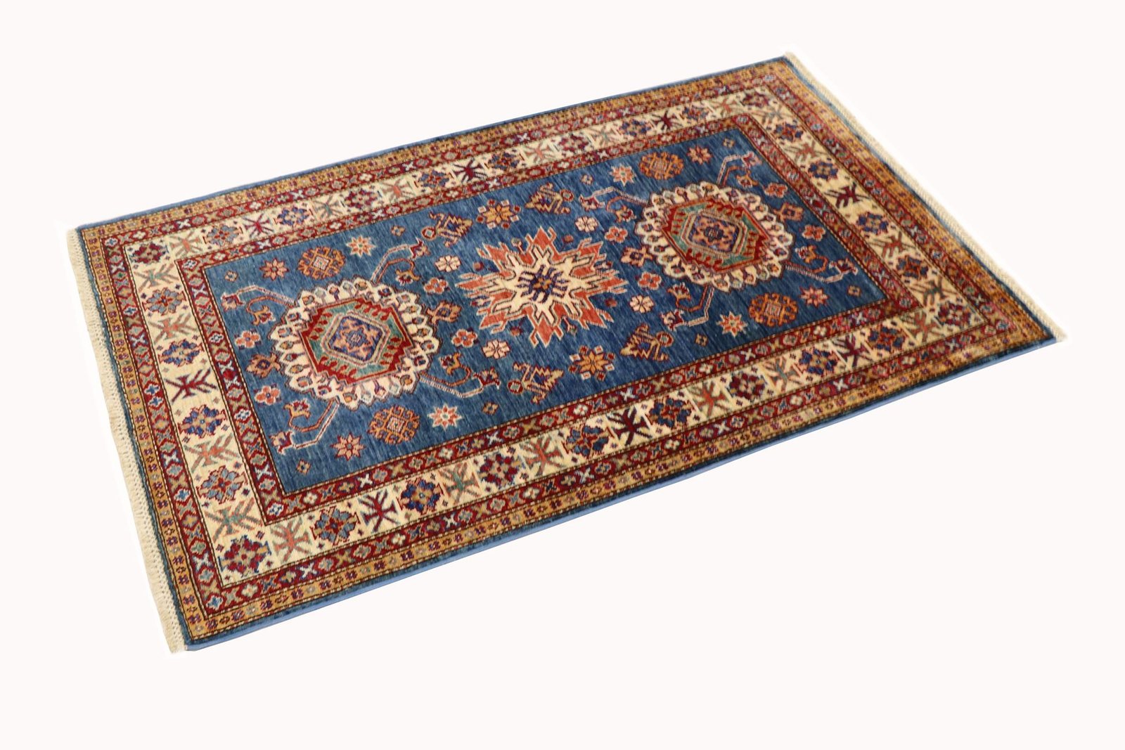 This hand-knotted Kazak masterfully represents the tradition of Caucasian carpets. With its impressive robustness and vibrant colours, it reflects the centuries-old culture of the Caucasus, which is known for its artistic carpet-knotting techniques. The simple yet charming patterns and bright colours make this carpet a sought-after piece in both the Orient and Europe. Its simple patchwork technique and harmonious colour accents allow it to be easily integrated into modern interiors. The Kazak skilfully combines traditional craftsmanship with current interior design trends and offers a stylish addition to any home.