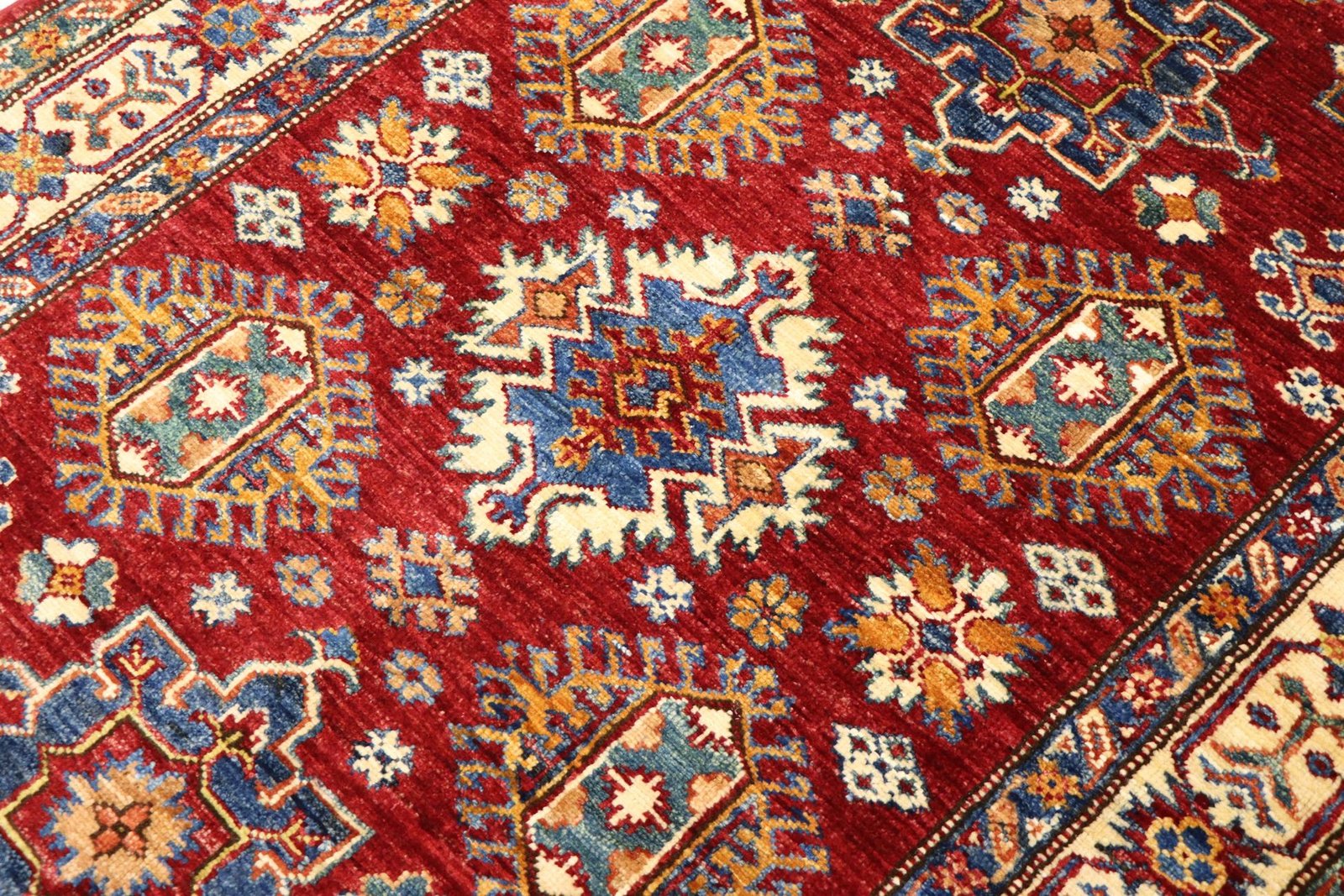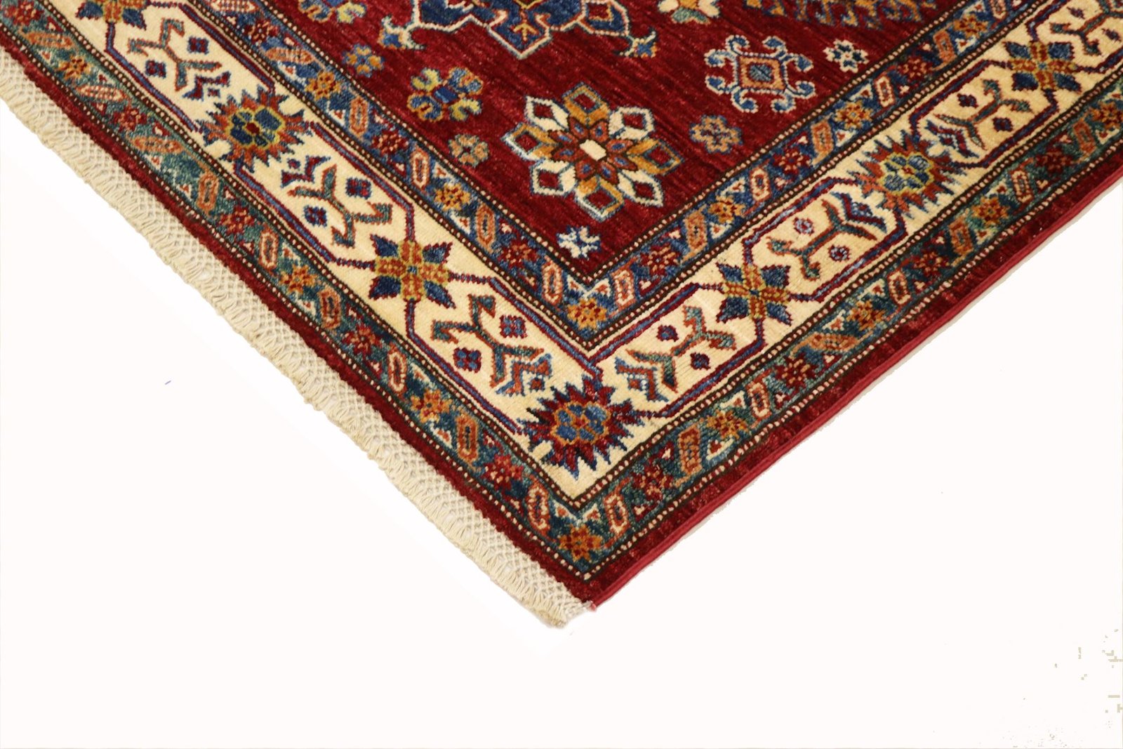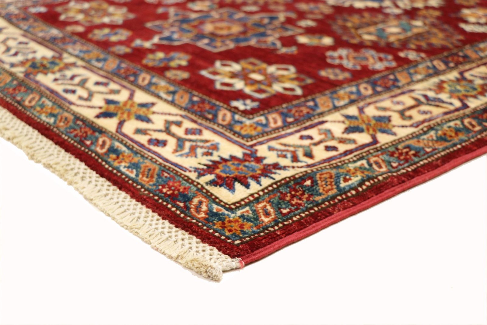 This hand-knotted Kazak rug is presented in the traditional style of Caucasian rugs and impresses with its high robustness and vibrant colours. It reflects the rich culture of the Caucasus in a harmonious composition that has been perfected over centuries. The art of carpet weaving in this region is characterised by its simple yet impressively vibrant patterns. Among Oriental carpets, this Kazak is one of the most sought-after both in the Orient and in Europe. Its simple patchwork and deliberate colour accents make it an excellent choice for modern interiors and current design trends. The carpet combines traditional craftsmanship with contemporary style and adapts to a variety of interior styles.