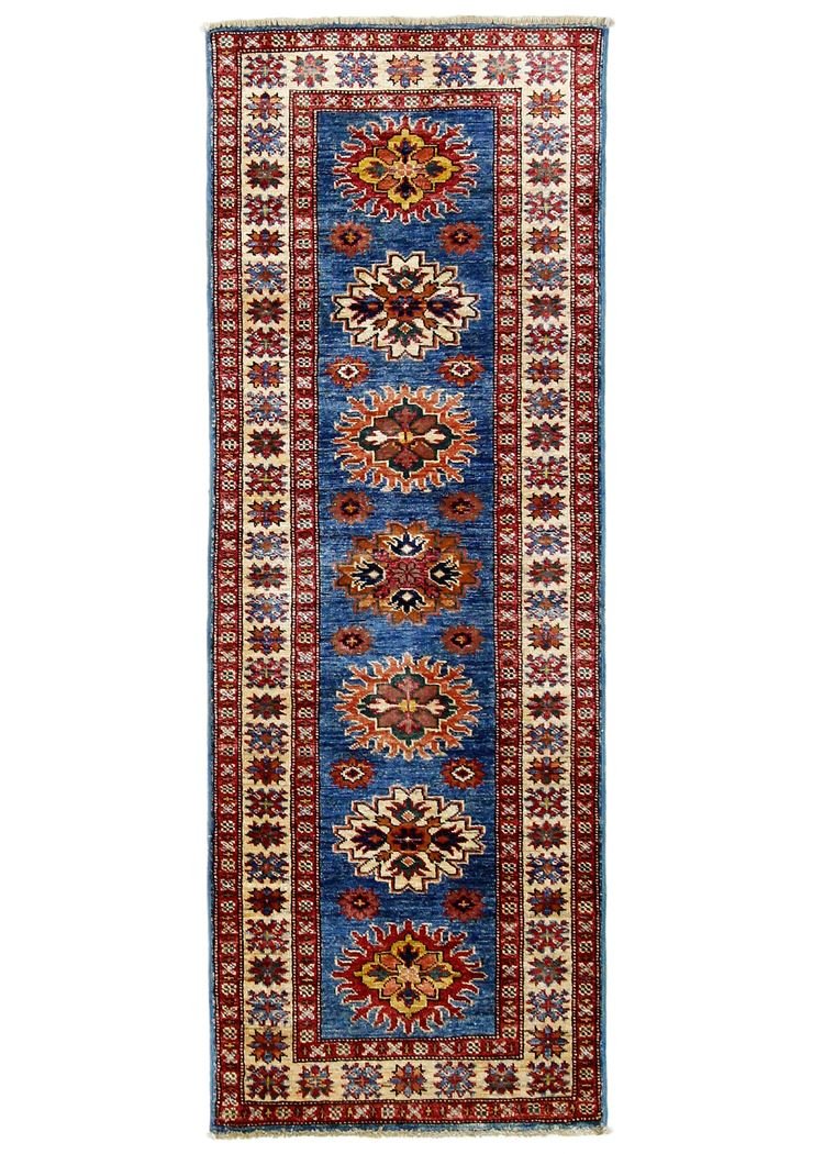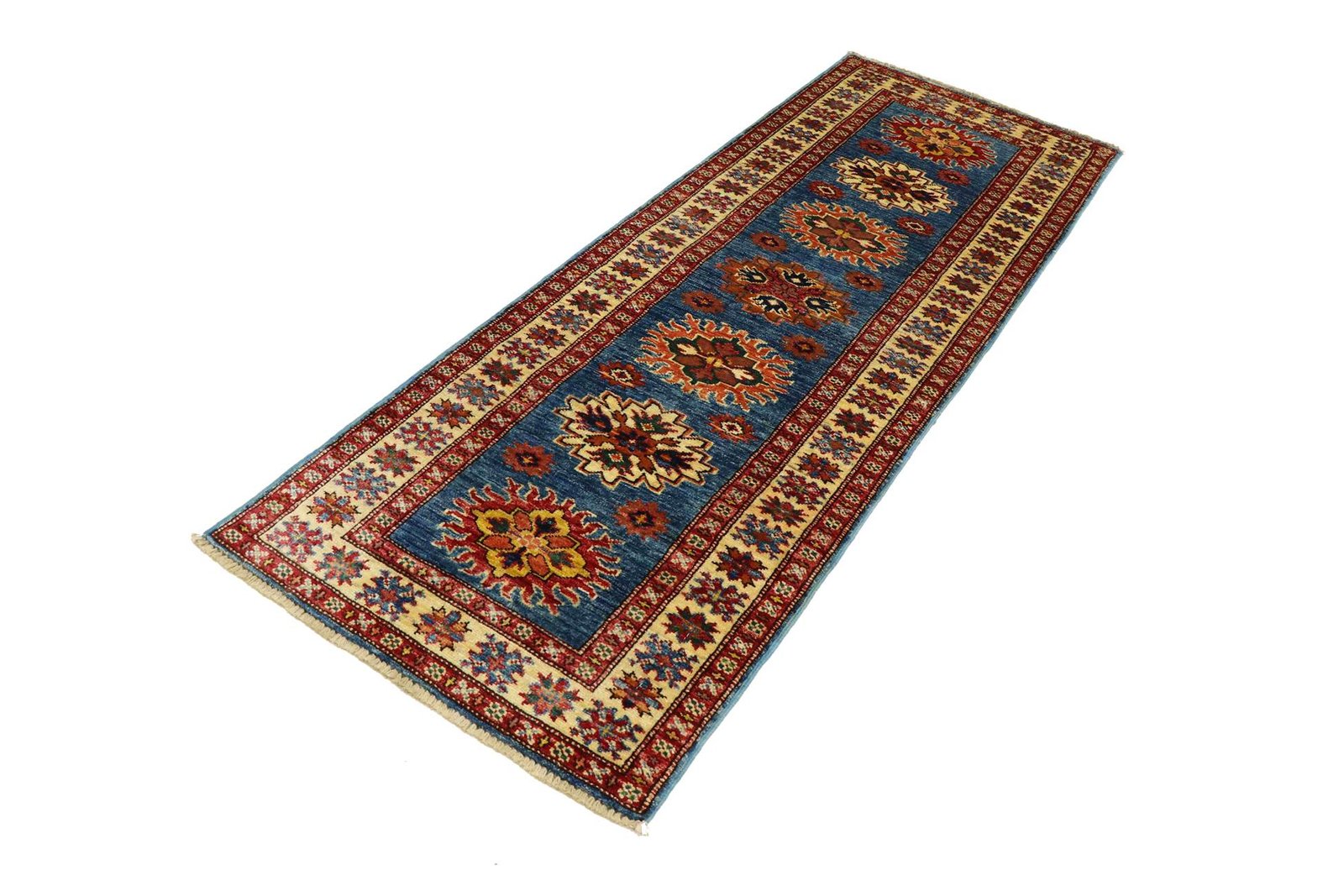 This hand-knotted Kazak carpet is a masterpiece of traditional Caucasian art. It impresses with its high robustness and vibrant colours, which reflect the rich culture of the Caucasus in an aesthetically pleasing composition. For centuries, the artisans of this region have perfected the art of carpet weaving, creating simple yet expressive patterns in vibrant colours. Among Oriental carpets, this Kazak is one of the most sought-after both in the Orient and in Europe. The simplicity of the patterns and the deliberate colour accents make it particularly versatile and easy to combine with modern interior design trends. This carpet blends seamlessly into contemporary living concepts and enriches any room with traditional charm.