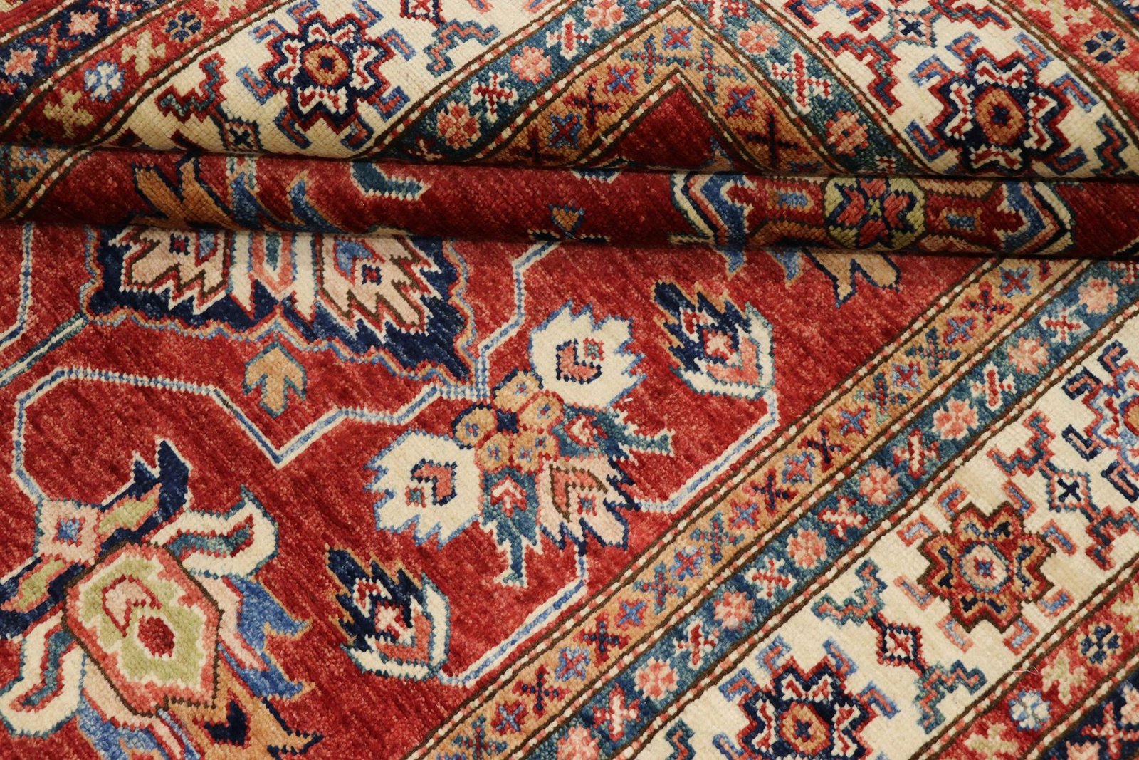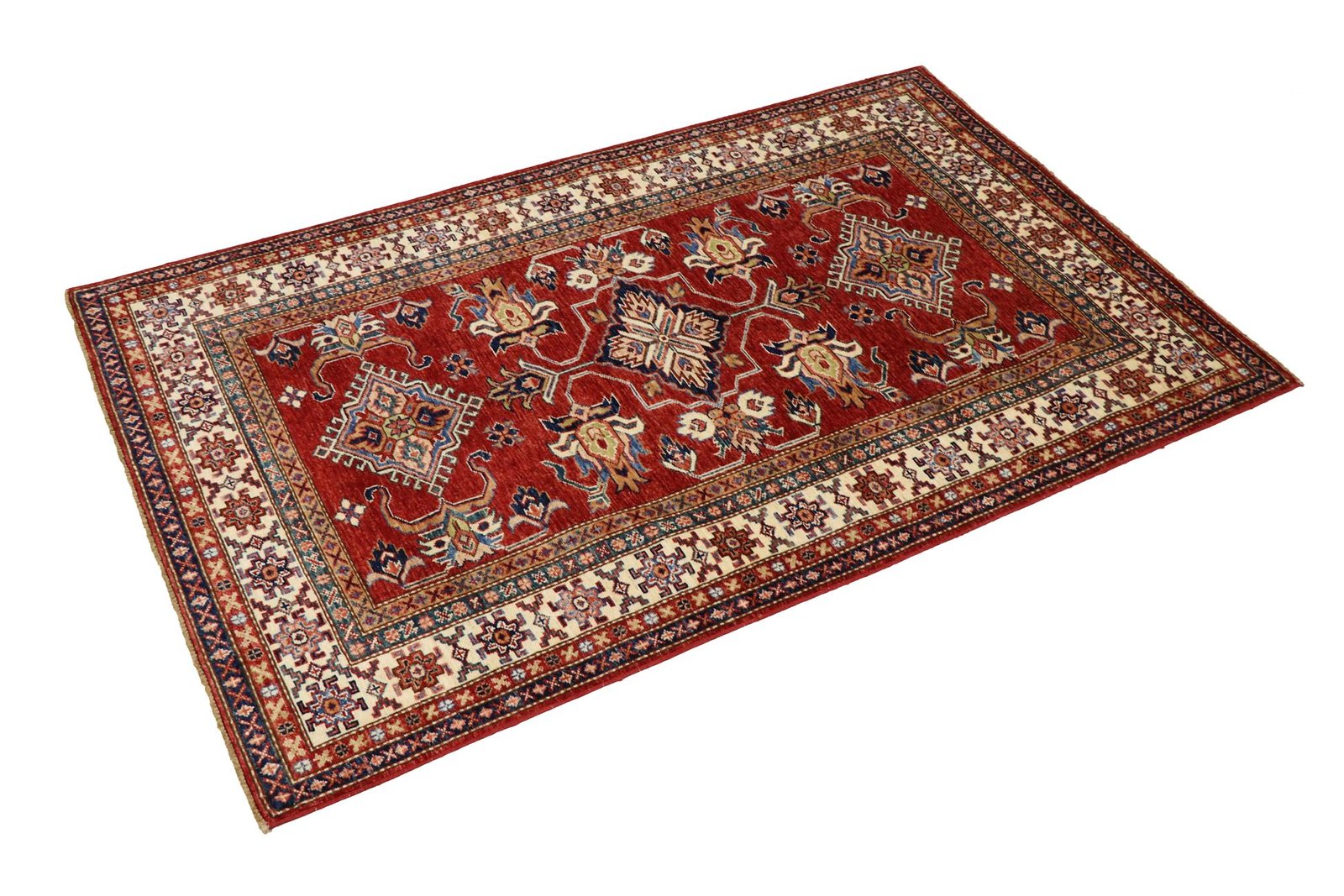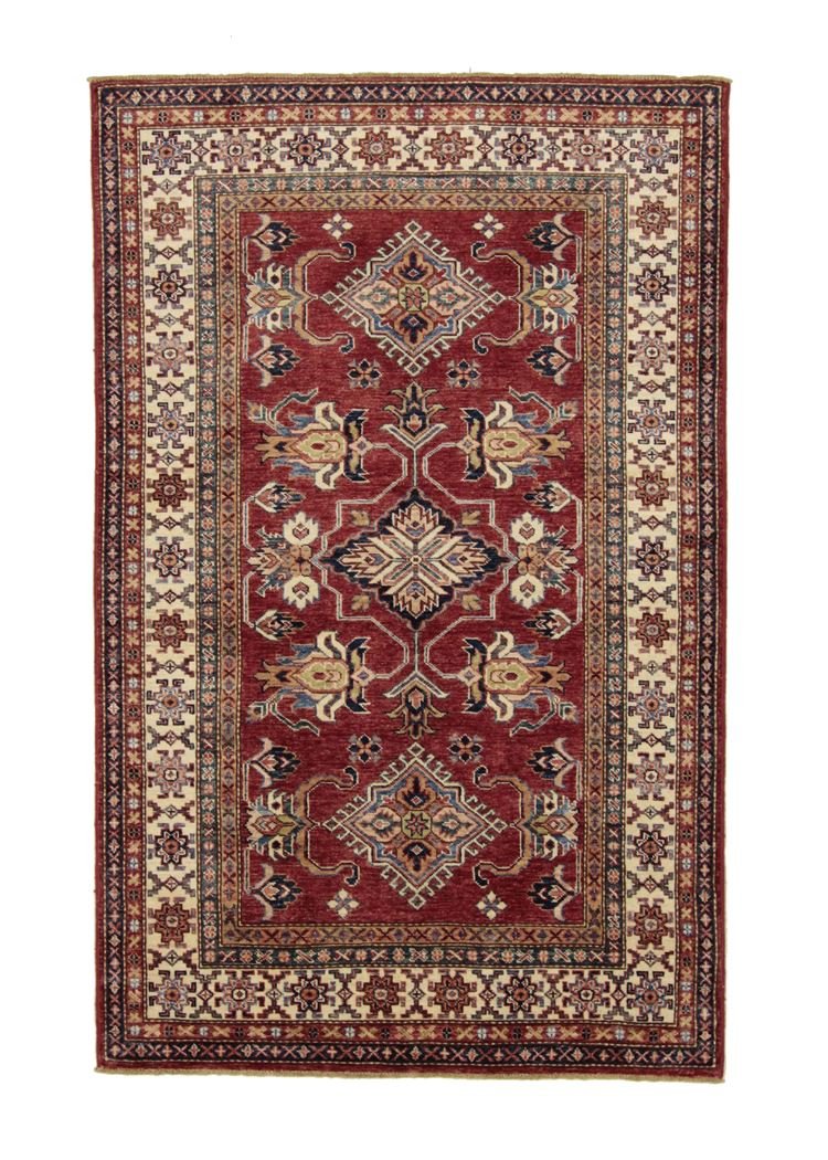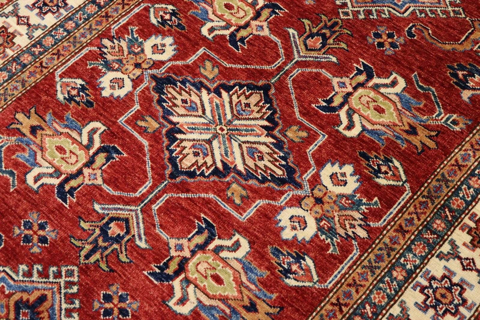 This hand-knotted Kazak rug, made in the traditional style of Caucasian rugs, impresses with its exceptional robustness and vibrant colours. It reflects the rich culture of the Caucasus, which is known for its centuries-old mastery of the art of rug knotting. The simple but appealing patterns and intense colours of this carpet are an expression of this cultural tradition. Among Oriental carpets, this Kazak is particularly sought after, both in the Orient and in Europe. The simple patchwork technique and the deliberate use of colour accents make it particularly versatile and adaptable to current trends and preferences in interior design. It is a perfect addition to both modern and classic interiors.