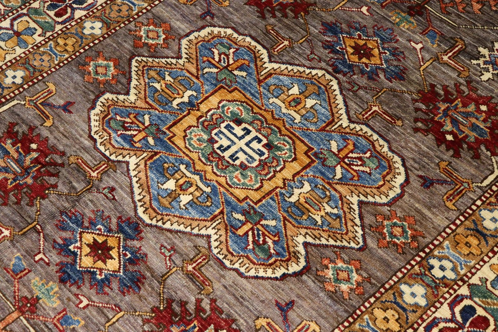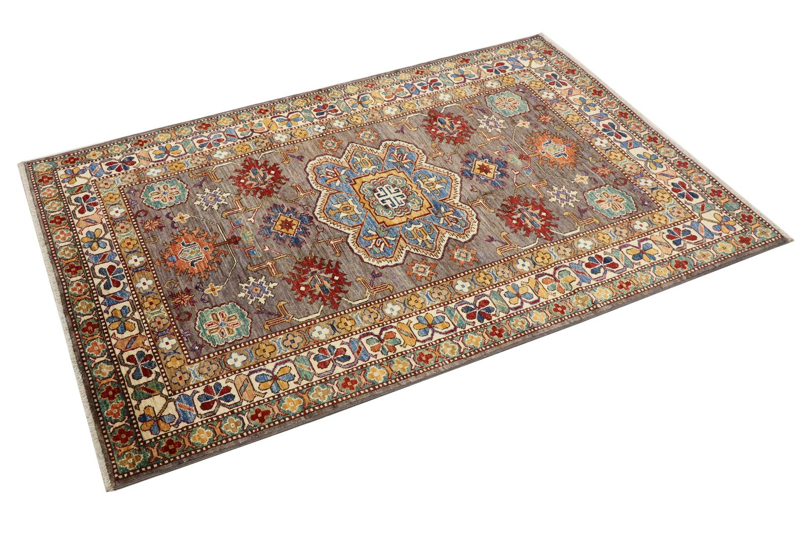 This hand-knotted Kazak, made in the traditional style of Caucasian carpets, impresses with its high robustness and vibrant colours. It reflects the rich culture of the Caucasus, which has been known for centuries for its outstanding carpet artistry. The simple yet appealing patterns in bright colours embody the essence of this region. Among Oriental carpets, this Kazak is one of the most sought-after both in the Orient and in Europe. The simplicity of the weave and the striking colour accents make it particularly easy to combine with modern interior design trends and preferences. This carpet combines traditional craftsmanship with contemporary style and offers a versatile addition to a variety of interiors.