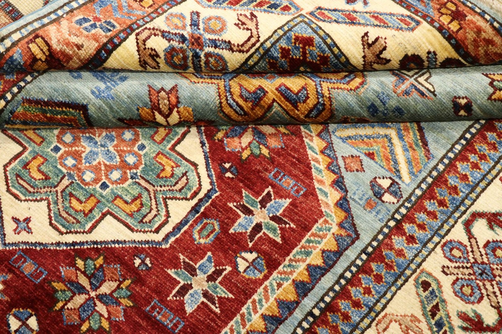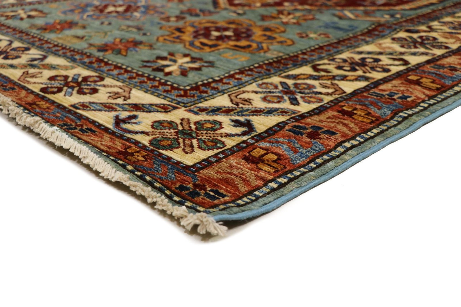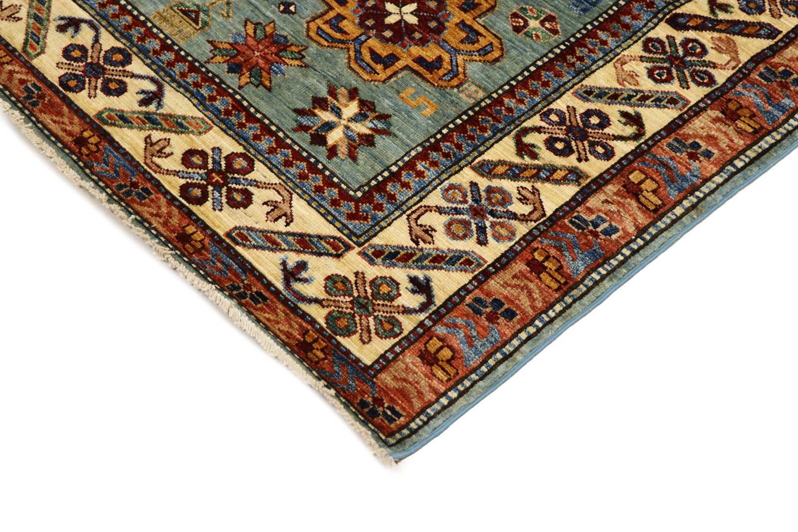 This hand-knotted Kazak is presented in the traditional style of Caucasian carpets and impresses with its exceptional robustness and vibrant colours. It captures the culture of the Caucasus in a harmonious composition that has been shaped by the artistry of carpet weaving for centuries. This art form combines charmingly simple patterns with impressively vibrant colours and reflects the long tradition of the region. Among Oriental carpets, this Kazak is one of the most sought-after both in the Orient and in Europe. Particularly noteworthy are the simplicity of the weave and the selected colour accents, which make this carpet ideal for combining with current interior design trends and preferences. It blends seamlessly into various living styles and brings cultural charm to modern interiors.
