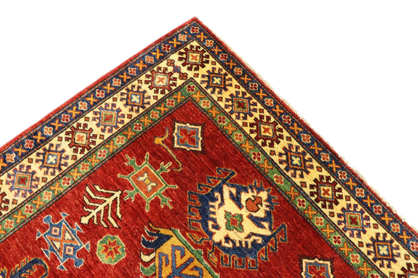 This hand-knotted Kazak is a masterful example of traditional Caucasian carpet art. It impresses with its exceptional robustness and vibrant colours, which reflect the culture of the Caucasus in a striking composition. Perfected over centuries, Caucasian carpet art embodies simple yet fascinating patterns in bright colours. Among Oriental carpets, this Kazak is one of the most sought-after both in the Orient and in Europe. Particularly noteworthy are the simplicity of the weaving and the deliberate use of colour accents, which make this carpet an ideal element for modern interiors. The combination of traditional craftsmanship and contemporary design makes this carpet an outstanding piece for any home.