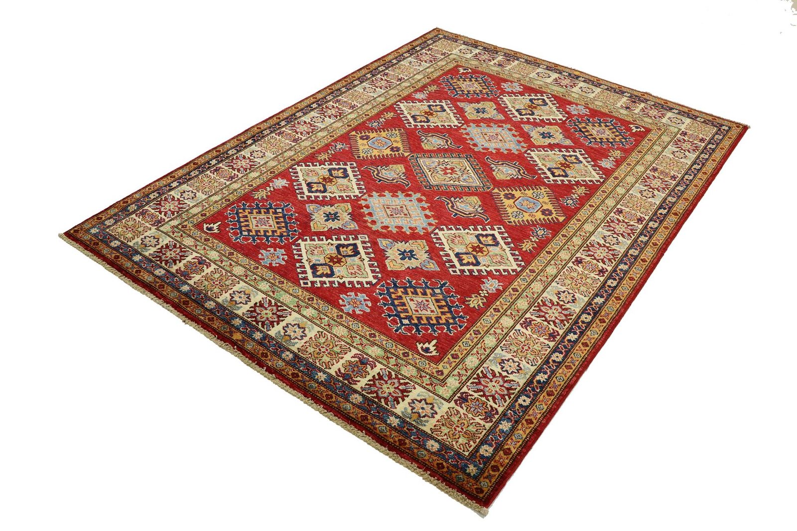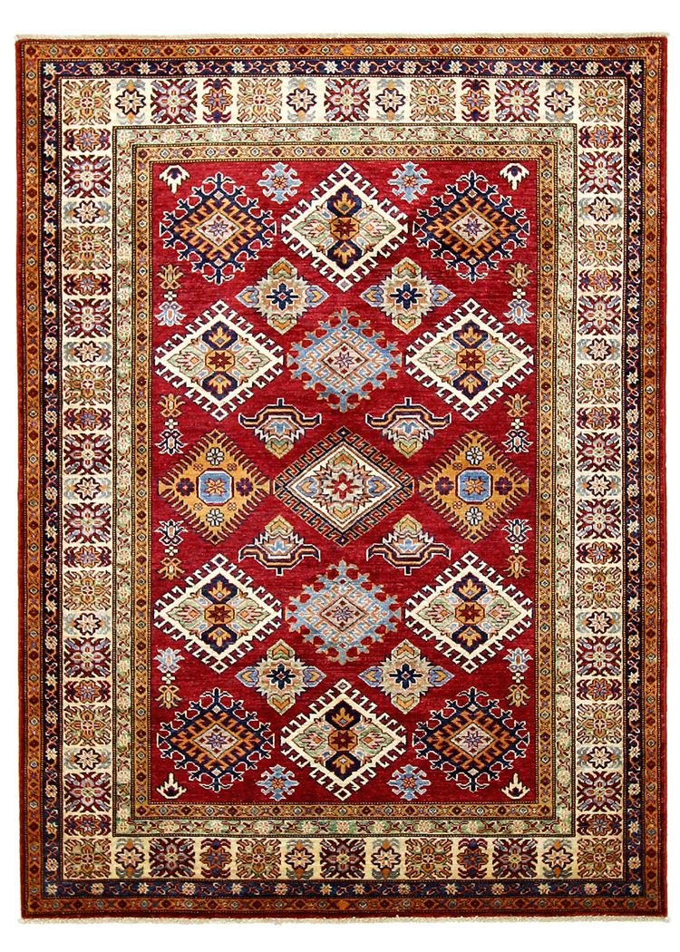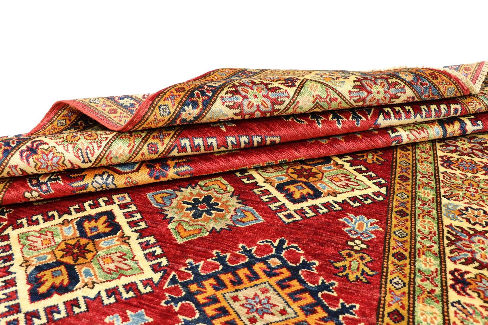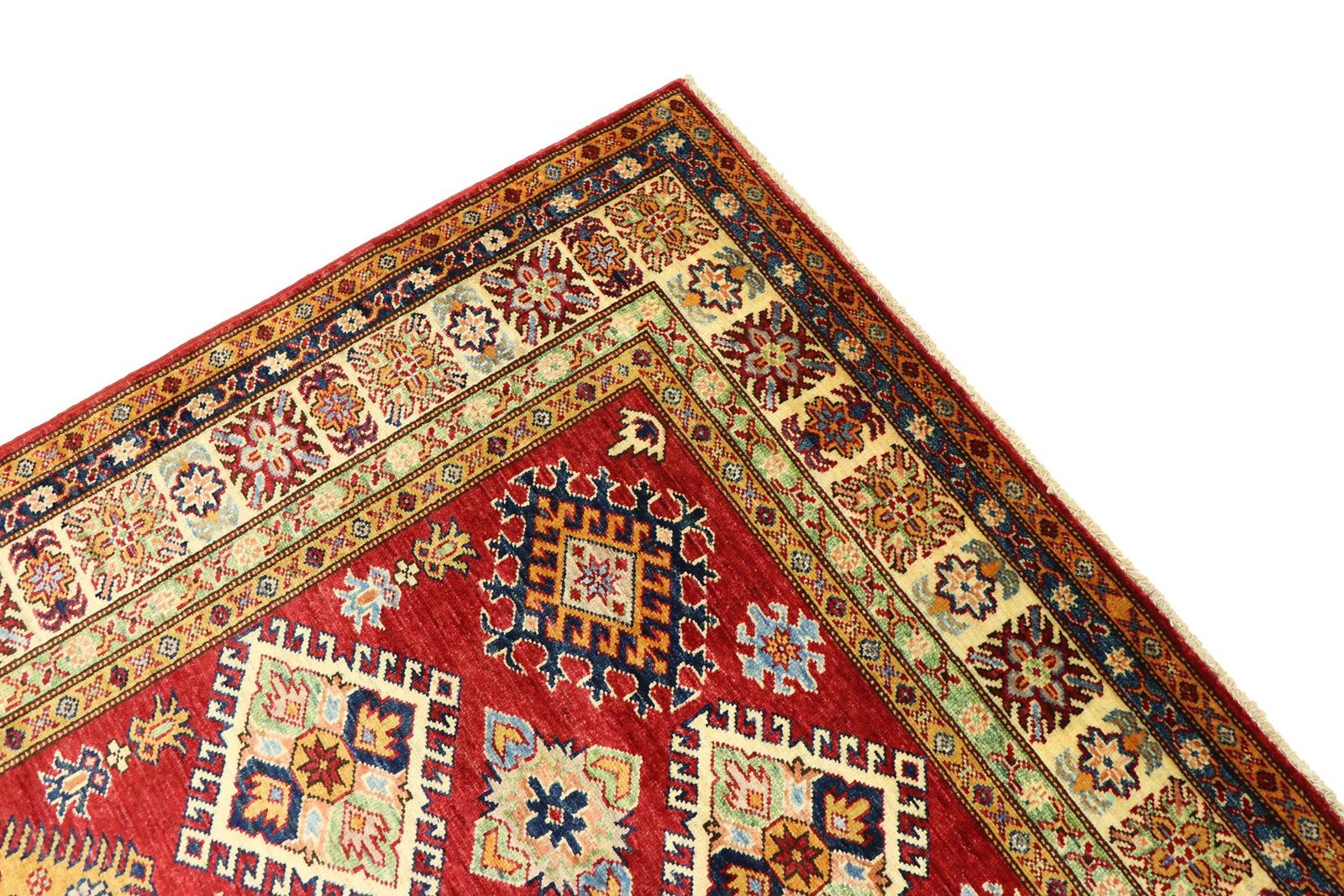 This hand-knotted Kazak impresses with its high robustness and vibrant colours, which reflect the rich culture of the Caucasus in a beautiful composition. The centuries-old art of carpet weaving in the Caucasus is evident here in simple yet fascinating patterns and vibrant colours. This Kazak is one of the most sought-after Oriental carpets in the Orient and Europe, as it captures the essence of traditional craftsmanship and has a timelessly elegant look. The simple patchwork and the deliberate use of colour accents make this carpet particularly versatile and easy to integrate into modern interior design trends. It combines traditional design with contemporary aesthetics, making it the perfect choice for a wide variety of interior styles.