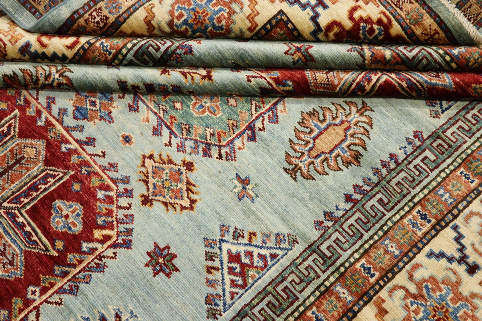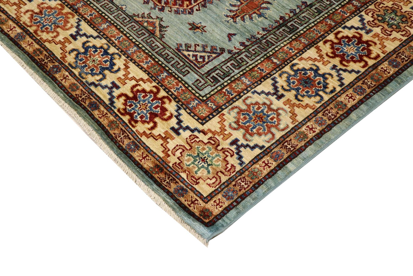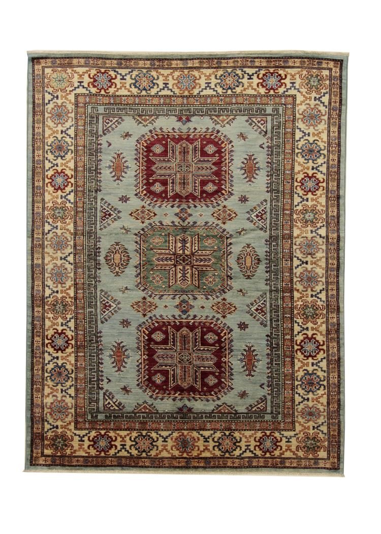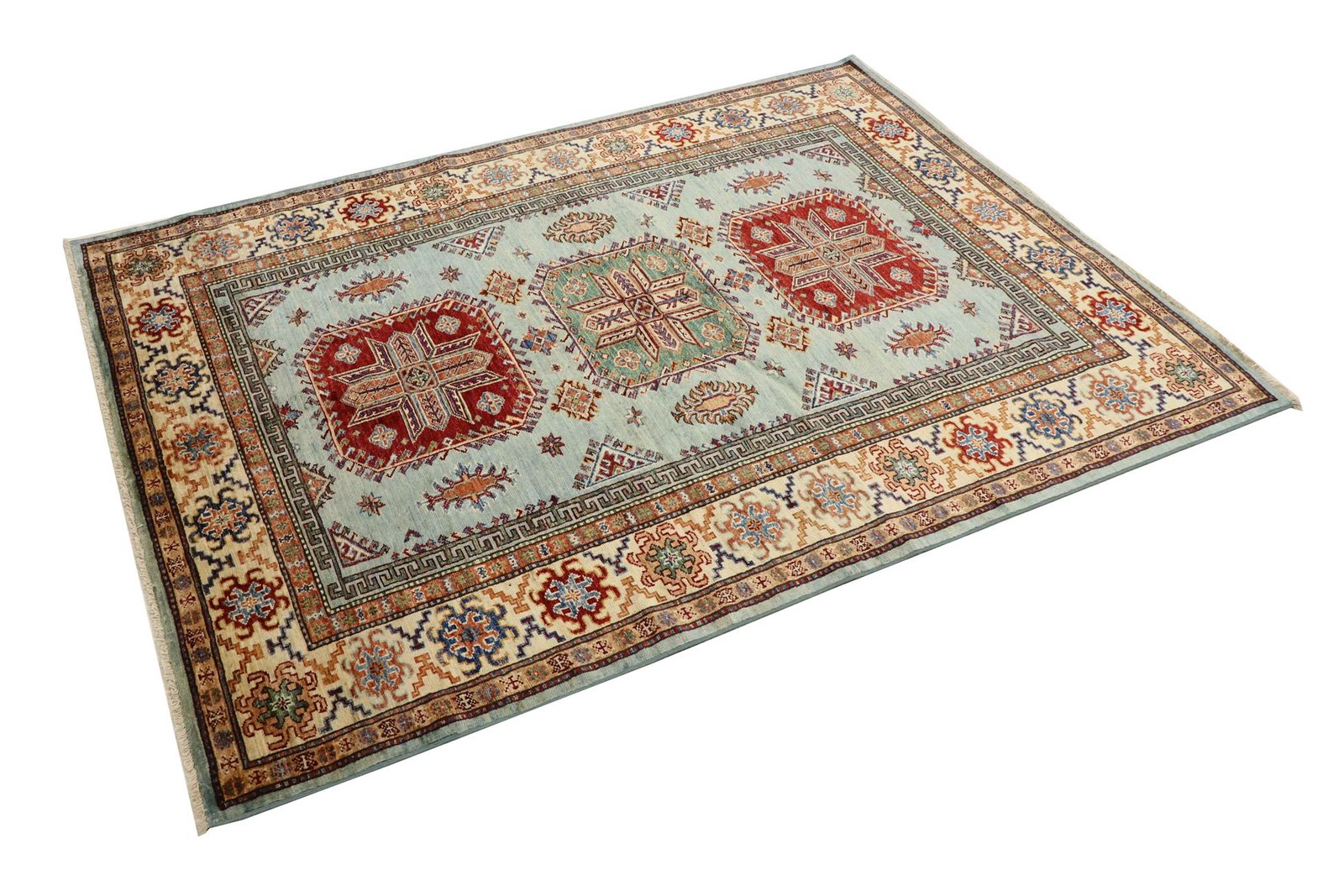 This hand-knotted Kazak carpet, masterfully crafted in the traditional style of Caucasian carpets, impresses with its high durability and vibrant colours. It represents the rich culture of the Caucasus in an enchanting composition that reflects the centuries-old tradition of carpet weaving. This art is known for its simple yet aesthetically pleasing shapes that shine in vibrant colours. Among Oriental carpets, this Kazak is particularly sought after, both in the Orient and in Europe. Its simple patchwork and carefully selected colour accents make it an ideal choice for modern interiors. The carpet combines traditional craftsmanship with contemporary design and can be perfectly integrated into current interior design trends, adding a special touch to any room.