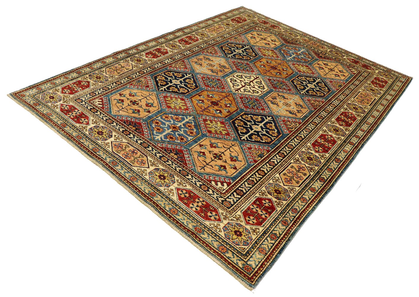 This hand-knotted Kazak is an exquisite example of traditional Caucasian carpet artistry. With its high durability and vibrant colours, it expresses the rich culture of this region in an impressive composition. For centuries, the Caucasus has mastered the art of carpet weaving, with simple shapes in bright colours playing a special role. This Kazak is particularly sought after among Oriental carpets, both in the Orient and in Europe. It owes its popularity to its simple weave and artfully applied colour accents, which allow it to blend perfectly into modern interiors. This carpet combines traditional craftsmanship with contemporary design, making it ideal for current interior design trends.