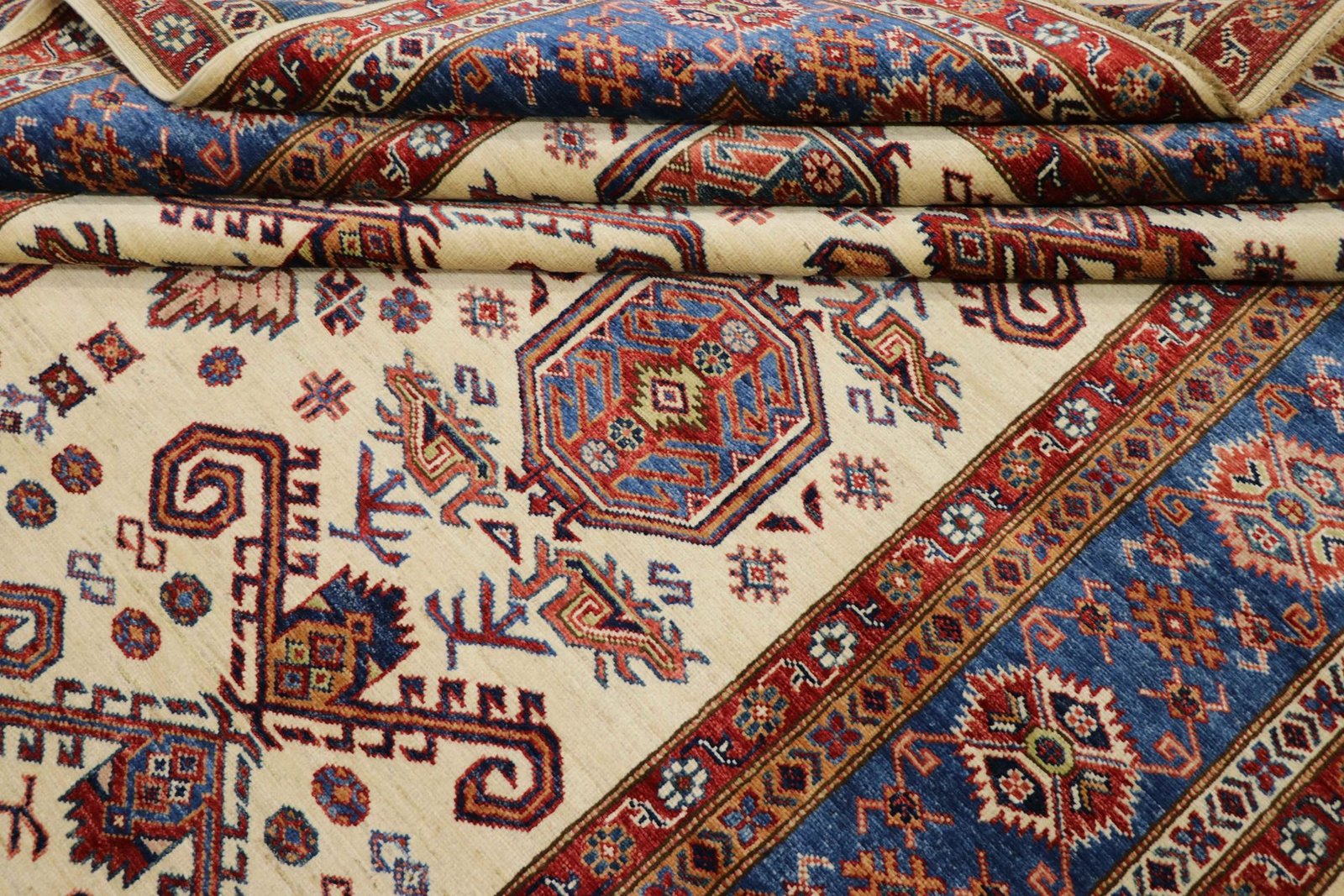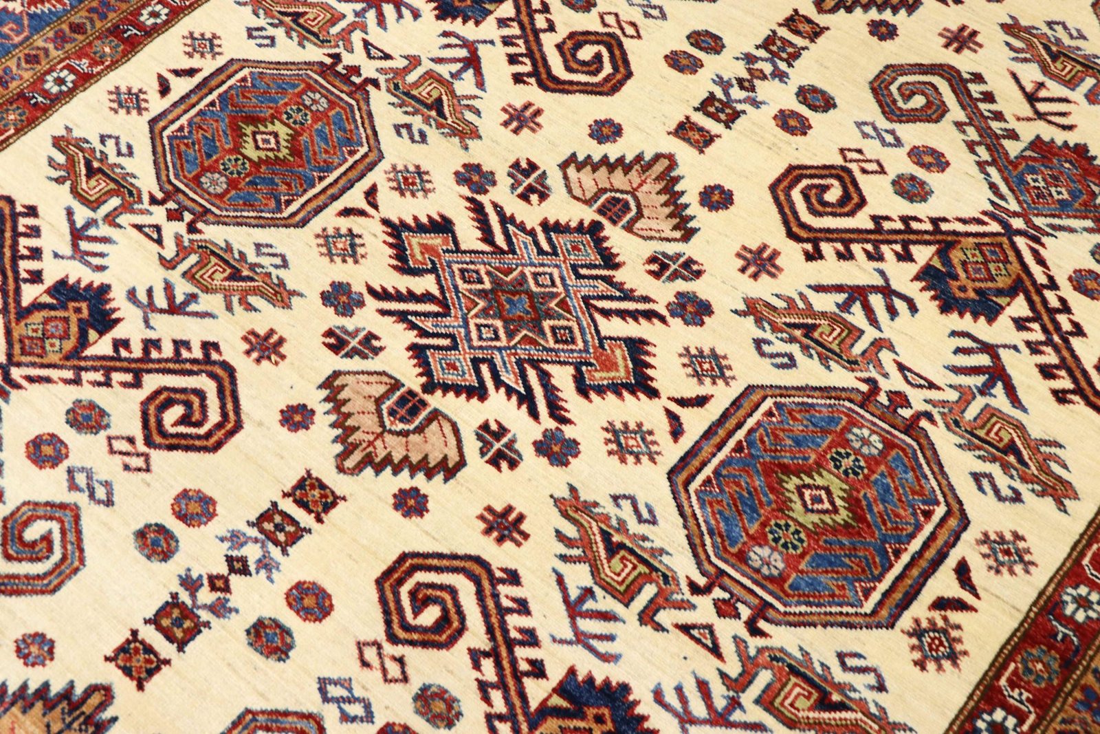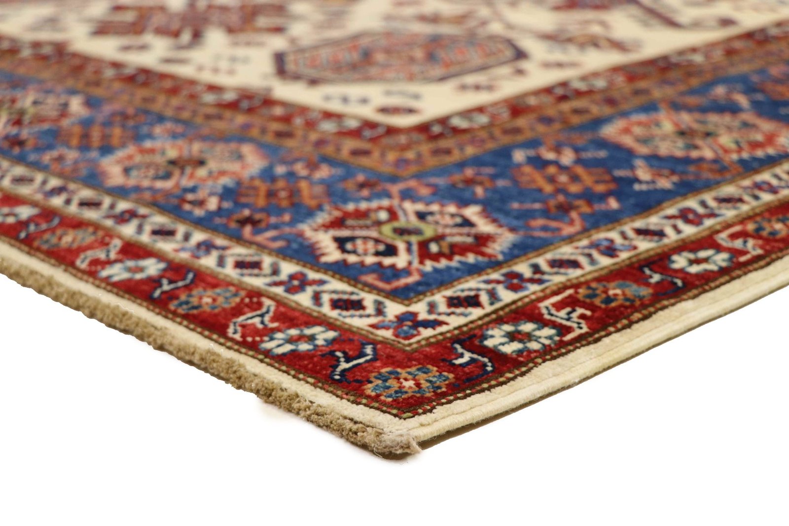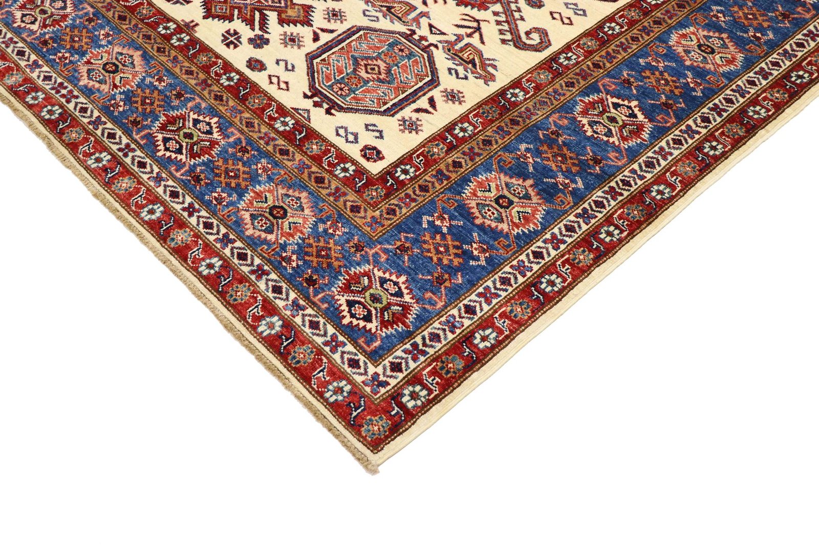 This hand-knotted Kazak, crafted in the traditional style of Caucasian carpets, impresses with its high durability and vibrant colours. It captures the essence of Caucasian culture in a stunning composition that has been renowned for centuries for its mastery of carpet weaving. The carpets are characterised by charmingly simple patterns and vibrant colours that reflect the tradition and aesthetics of the region. Among Oriental carpets, this Kazak is one of the most sought-after both in the Orient and in Europe. Particularly noteworthy are the simple weave and tasteful colour accents, which make it ideal for modern interior styles. It combines traditional craftsmanship with contemporary trends and fits perfectly into current interior design concepts.
