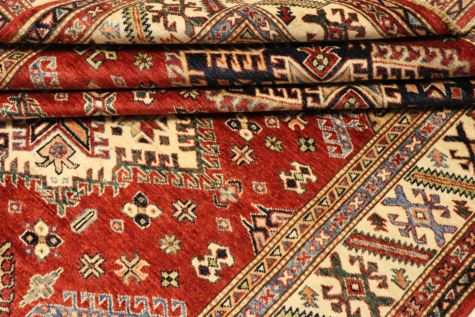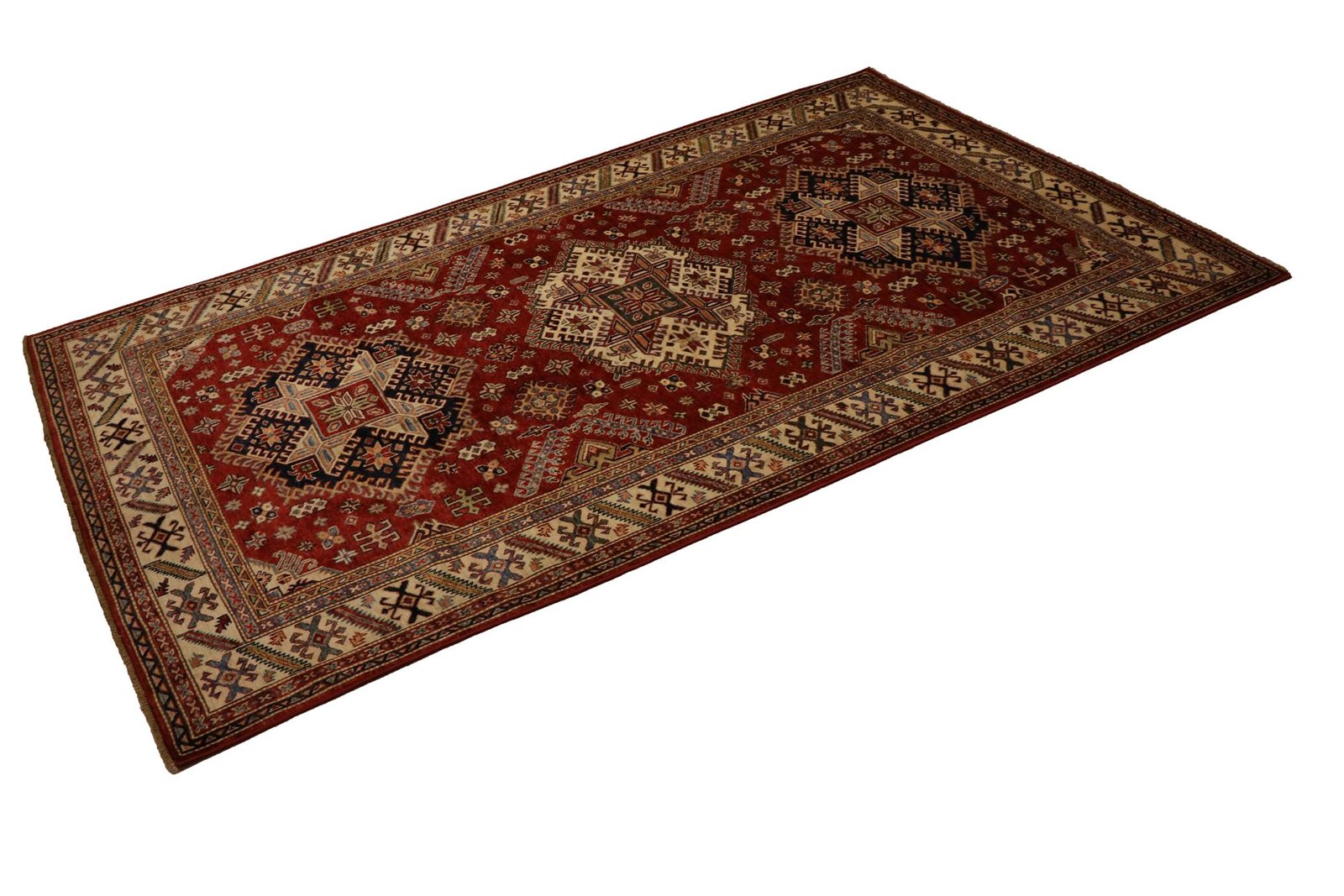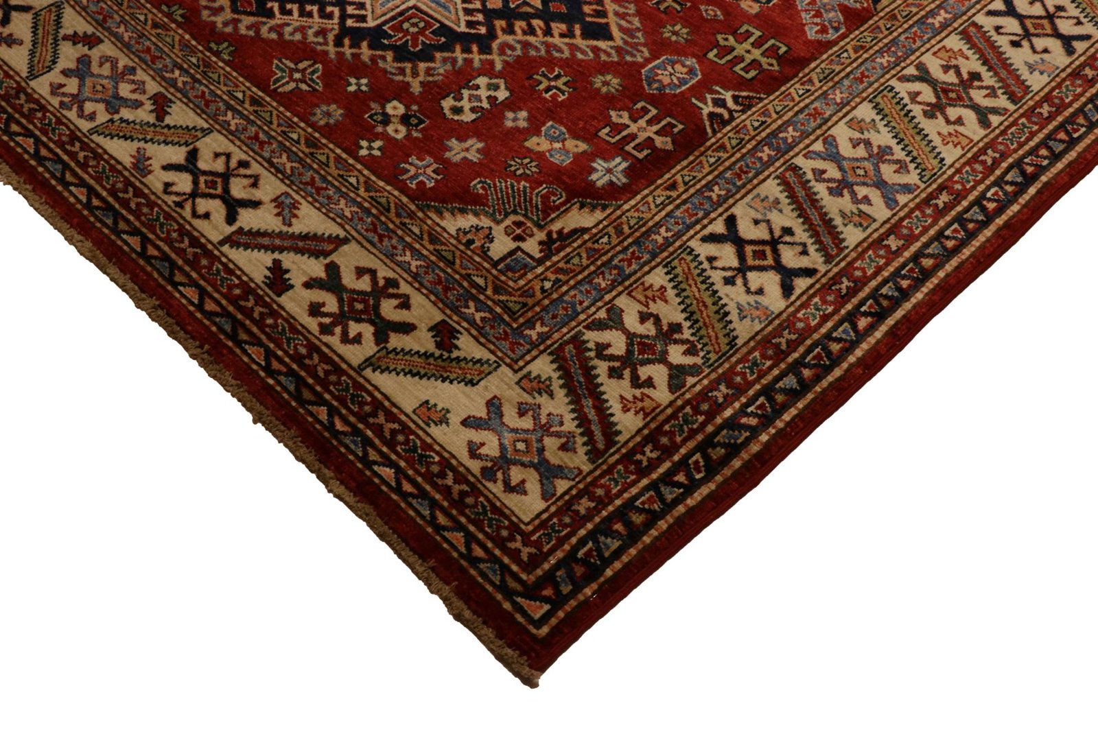 This hand-knotted Kazak, made in the traditional style of Caucasian carpets, impresses with its high robustness and vibrant colours. It embodies the culture of the Caucasus in a beautiful composition that looks back on centuries of carpet artistry. The charmingly simple patterns and intense colours are typical of this region, which masterfully implements the art of carpet weaving. Among Oriental carpets, this Kazak is one of the most sought-after, both in the Orient and in Europe. Its simple patchwork and deliberate use of colour accents make it ideal for combining with modern interior design trends. It combines traditional craftsmanship with contemporary design, making it the perfect addition to any interior.