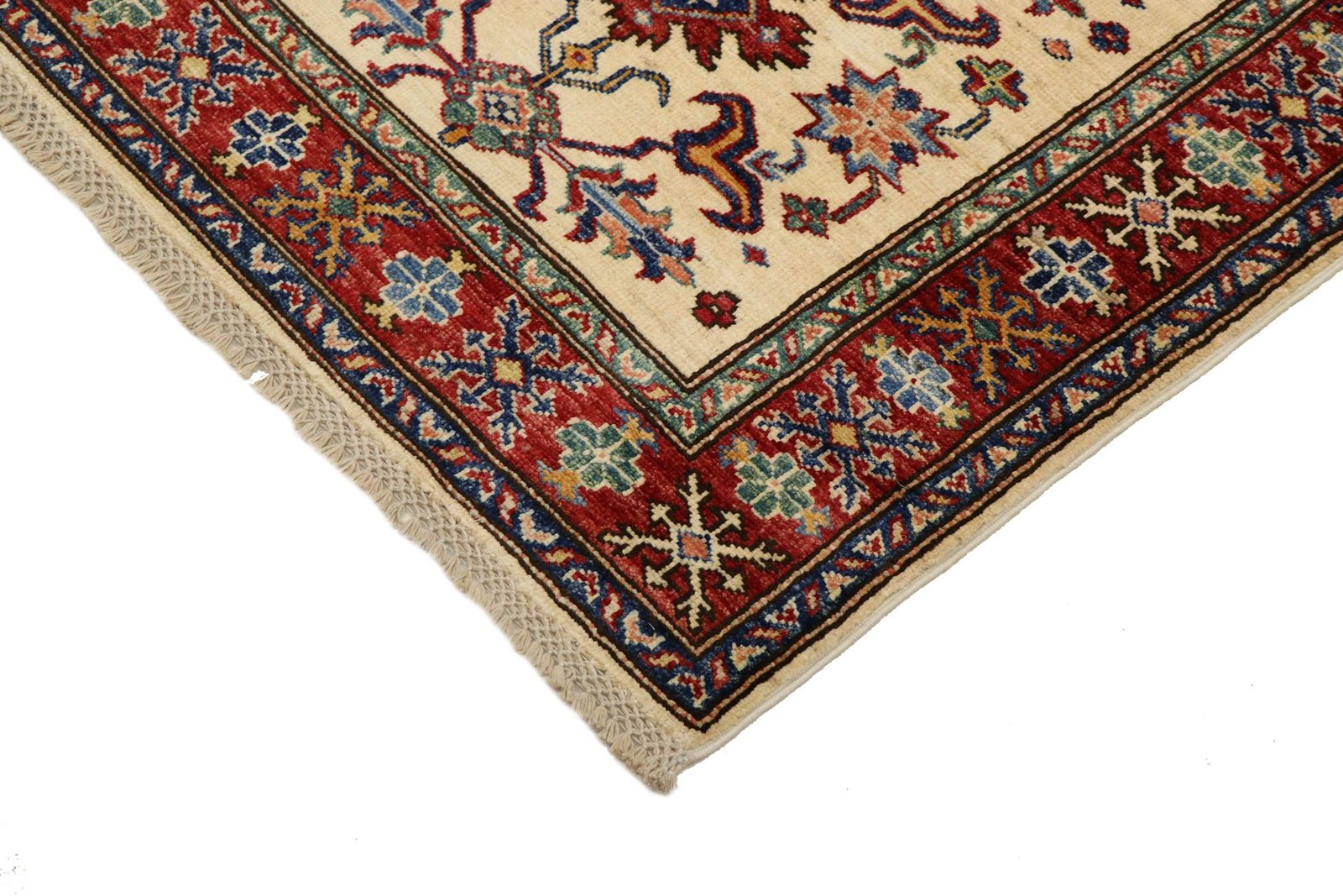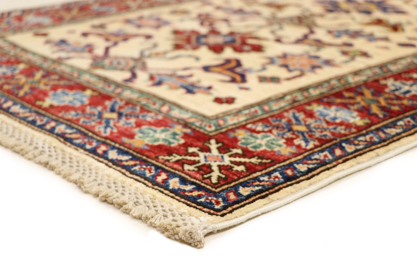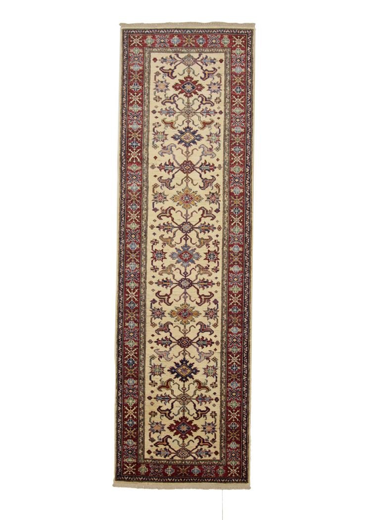 This hand-knotted Kazak is an excellent example of traditional Caucasian carpet art, known for its high durability and vibrant colours. It reflects the culture of the Caucasus in a fascinating composition that has been famous for centuries for its masterful carpet weaving. The simple but charming designs and impressively vivid colours contribute to the uniqueness of this carpet. Among Oriental carpets, this Kazak is one of the most sought-after both in the Orient and in Europe. Particularly noteworthy are the artful simplicity of the patchwork and the harmonious colour accents, which make it ideal for combining with current interior design trends. This carpet combines traditional craftsmanship with modern style and is a perfect addition to any interior design.