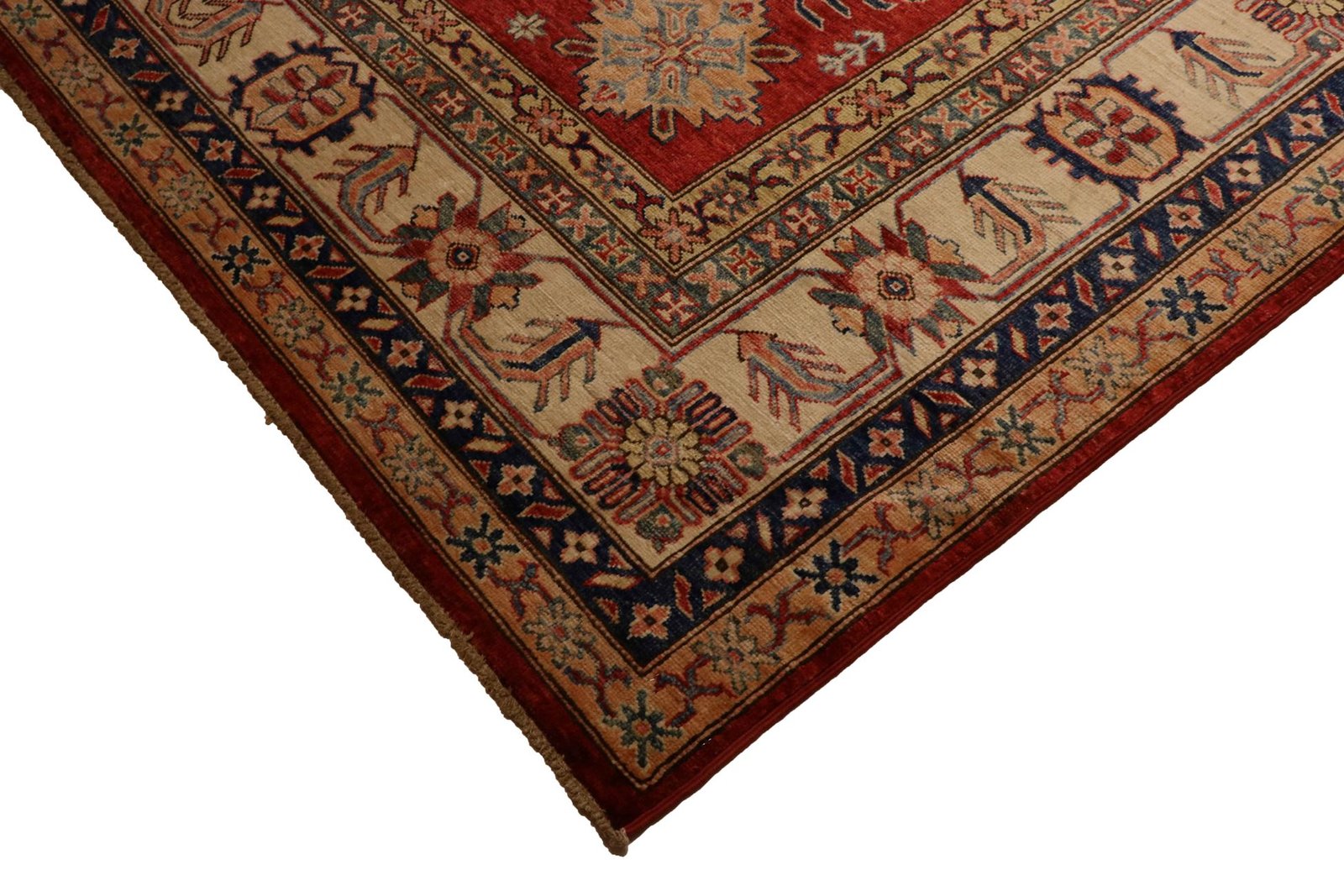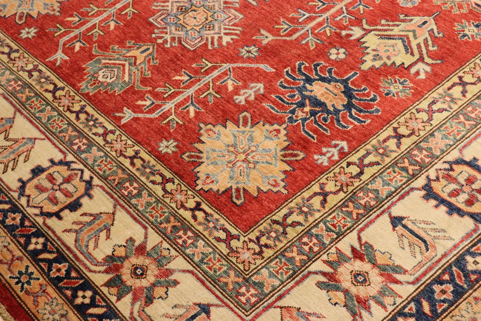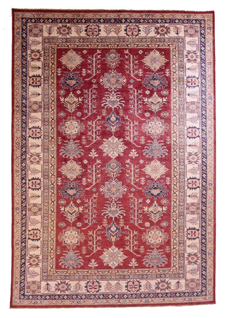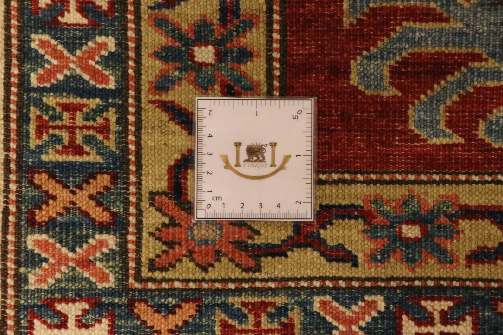This hand-knotted Kazak in traditional Caucasian style impresses with its high robustness and vibrant colours. It captures the essence of Caucasian culture in a masterful composition that has been renowned for centuries for its carpet-knotting artistry. With its charmingly simple shapes and impressively vivid colours, it embodies the long-standing tradition of this region. This Kazak is one of the most sought-after Oriental carpets, both in the Orient and in Europe. Particularly noteworthy are the simple patchwork and the skilfully placed colour accents, which make the carpet ideal for modern interior design trends. It can be perfectly combined with current interior design preferences and combines traditional craftsmanship with contemporary design.