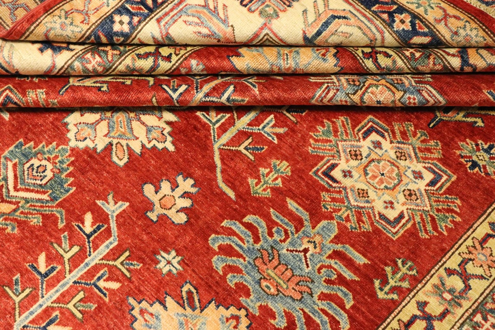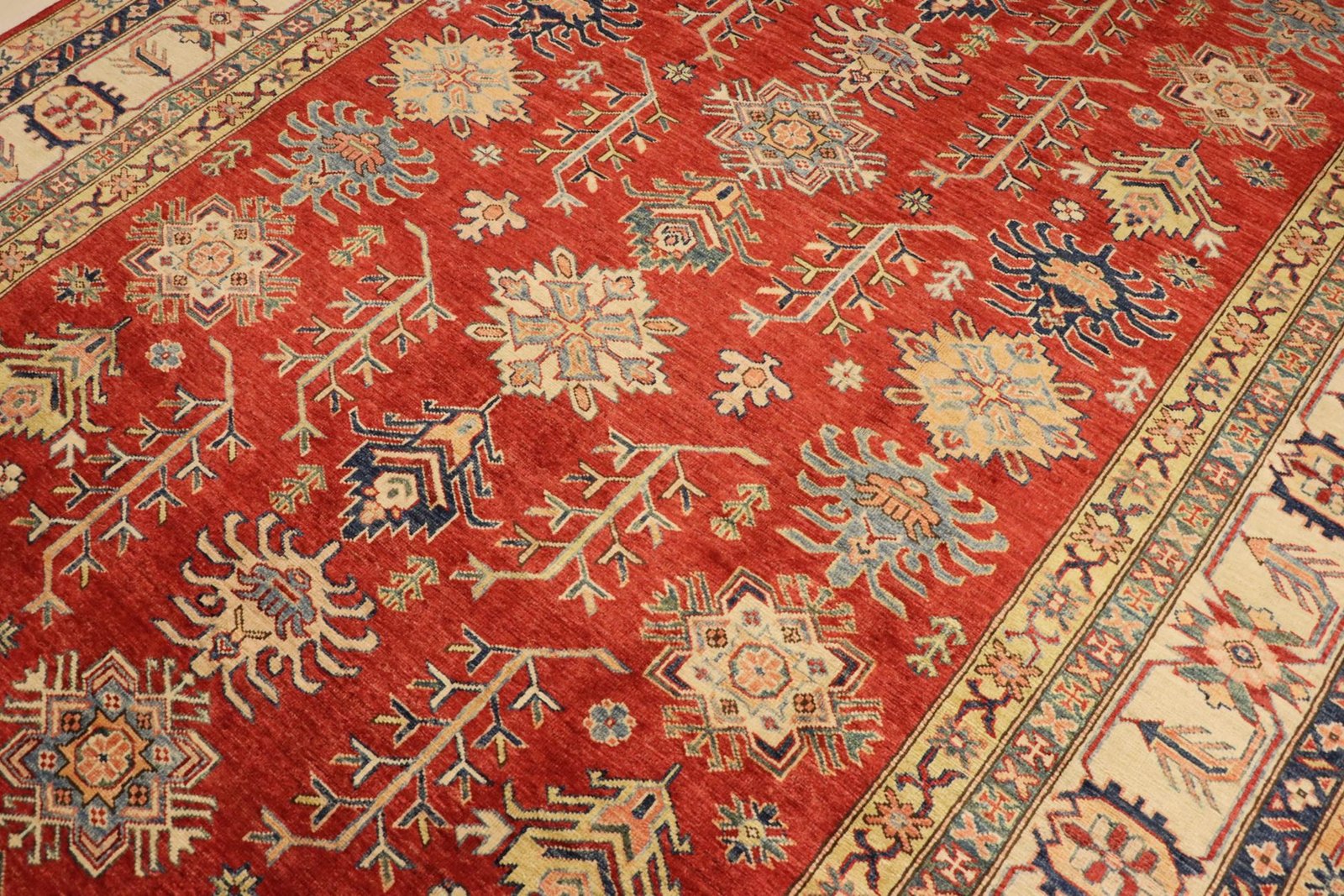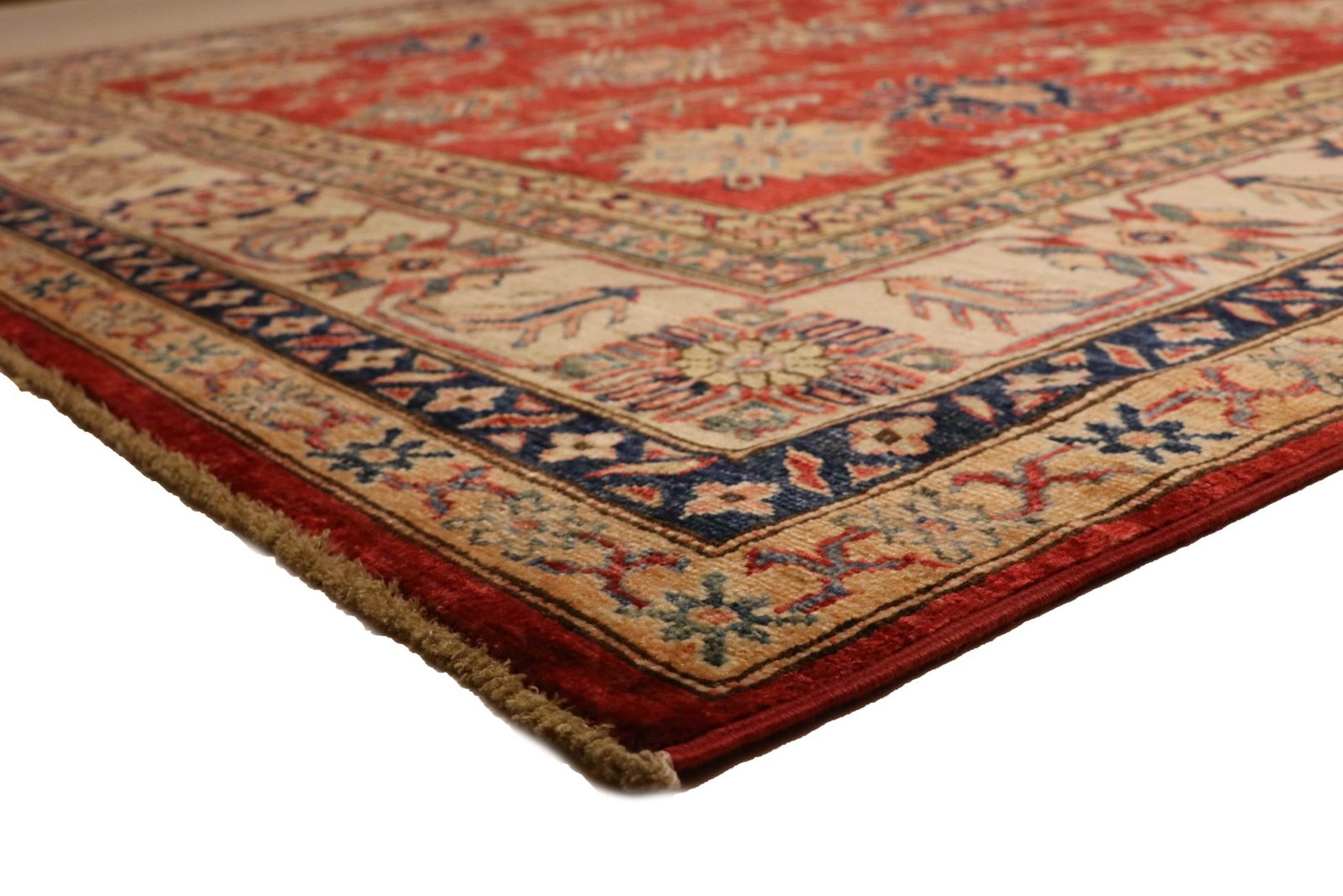 This hand-knotted Kazak in traditional Caucasian style impresses with its high robustness and vibrant colours. It captures the essence of Caucasian culture in a masterful composition that has been renowned for centuries for its carpet-knotting artistry. With its charmingly simple shapes and impressively vivid colours, it embodies the long-standing tradition of this region. This Kazak is one of the most sought-after Oriental carpets, both in the Orient and in Europe. Particularly noteworthy are the simple patchwork and the skilfully placed colour accents, which make the carpet ideal for modern interior design trends. It can be perfectly combined with current interior design preferences and combines traditional craftsmanship with contemporary design.