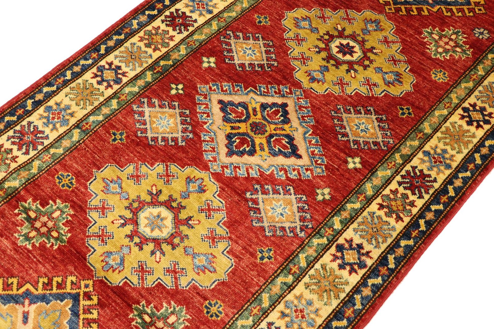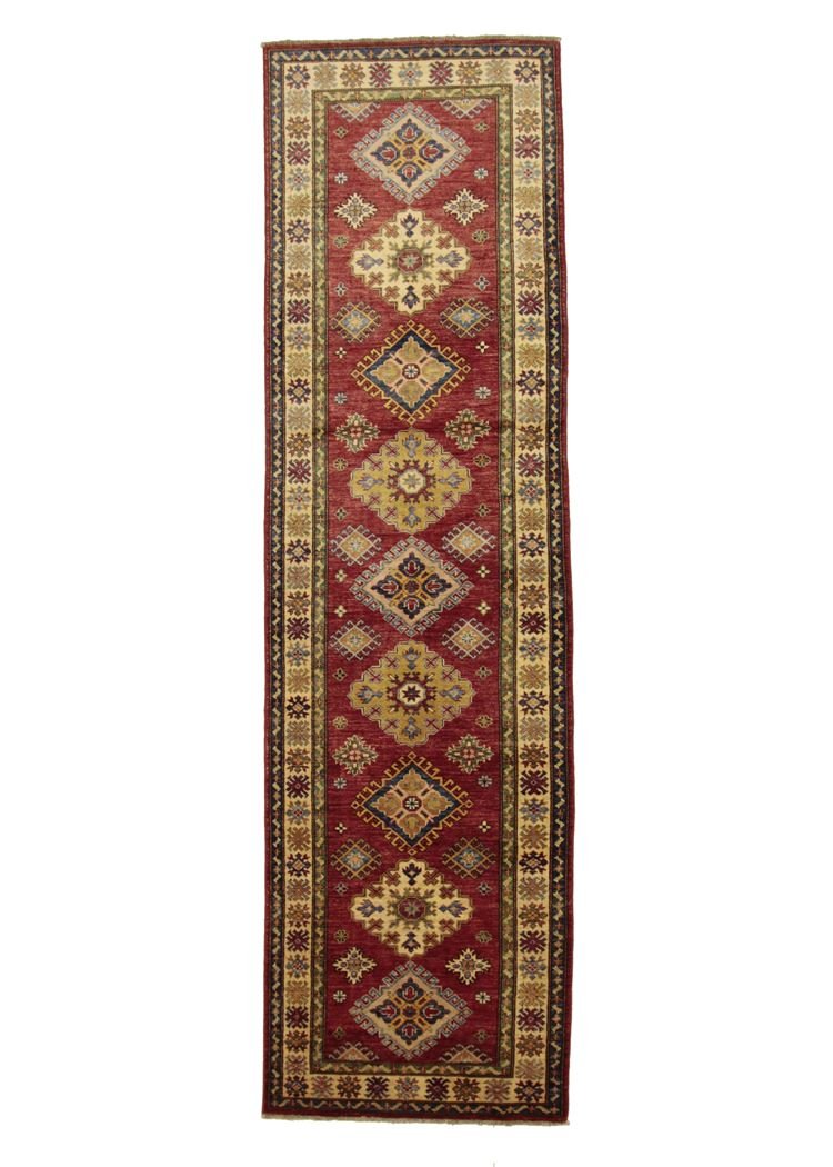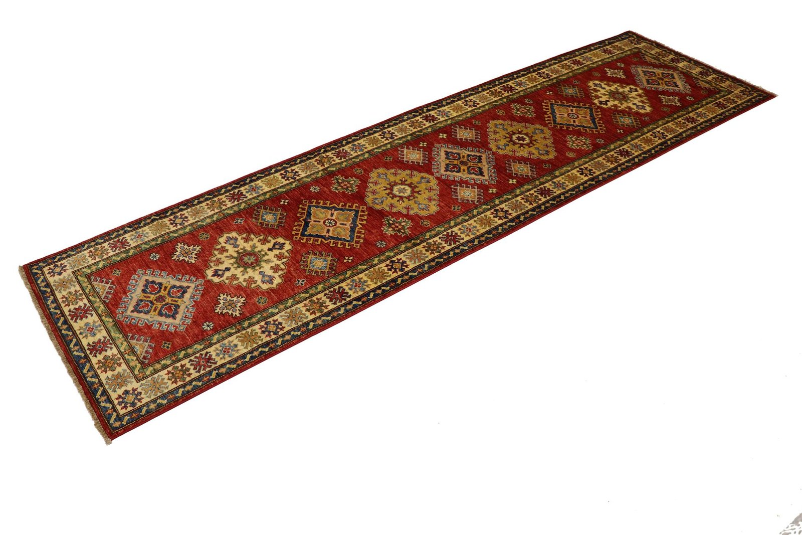 This hand-knotted Kazak, made in the traditional style of Caucasian carpets, impresses with its high robustness and vibrant colours. It reflects the culture of the Caucasus in a beautiful composition that has been known for centuries for its masterful carpet artistry. This culture is evident in simple but expressive patterns and intense colours. Among Oriental carpets, this Kazak is one of the most sought-after both in the Orient and in Europe. Particularly noteworthy are the simple patchwork and the skilfully placed colour accents, which make it ideal for combining with modern interior design trends. The carpet combines traditional craftsmanship with contemporary design and blends harmoniously into current interior designs.