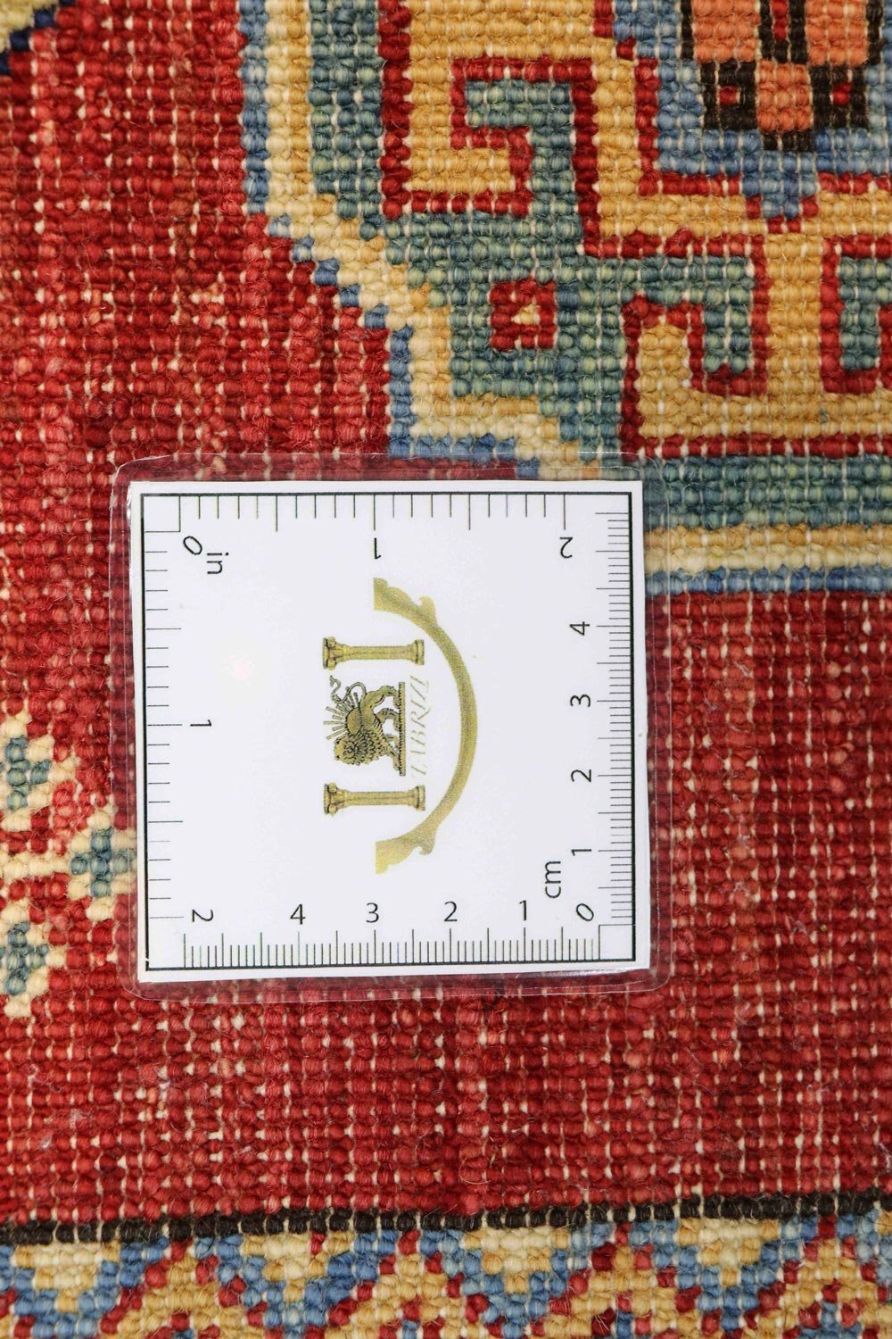 This hand-knotted Kazak, made in the traditional style of Caucasian carpets, impresses with its high robustness and vibrant colours. It reflects the culture of the Caucasus in an impressive composition that has been renowned for its craftsmanship for centuries. This culture is evident in simple yet fascinating patterns and vibrant colours. Among Oriental carpets, this Kazak is one of the most sought-after in the Orient and Europe. Particularly noteworthy are the simplicity of the weaving and the artfully placed colour accents, which make this carpet ideal for modern interiors. It can be easily combined with current interior design trends and combines traditional craftsmanship with contemporary design.