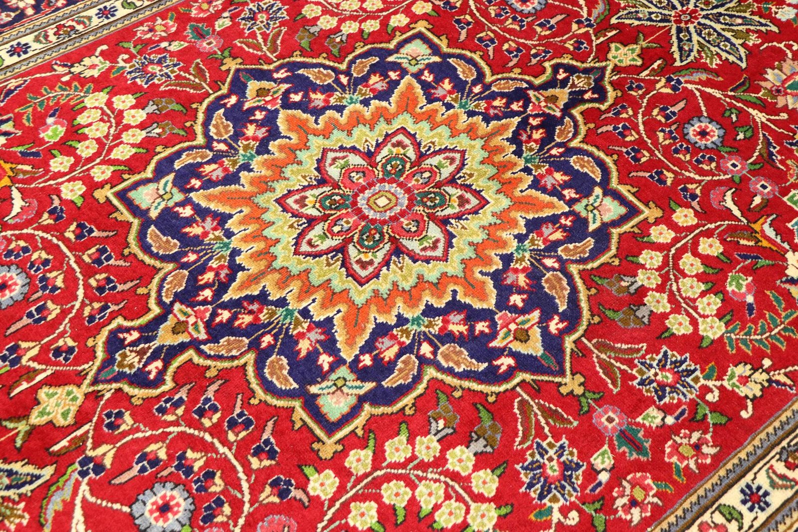 Tabriz always knots with cork wool and silk.