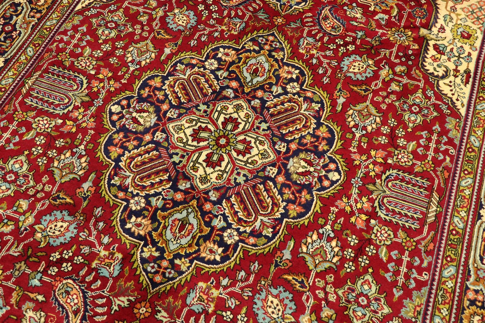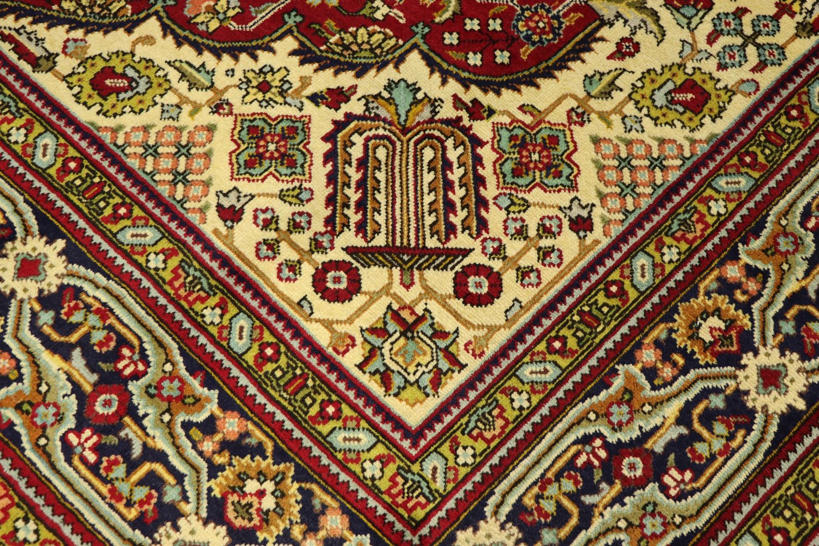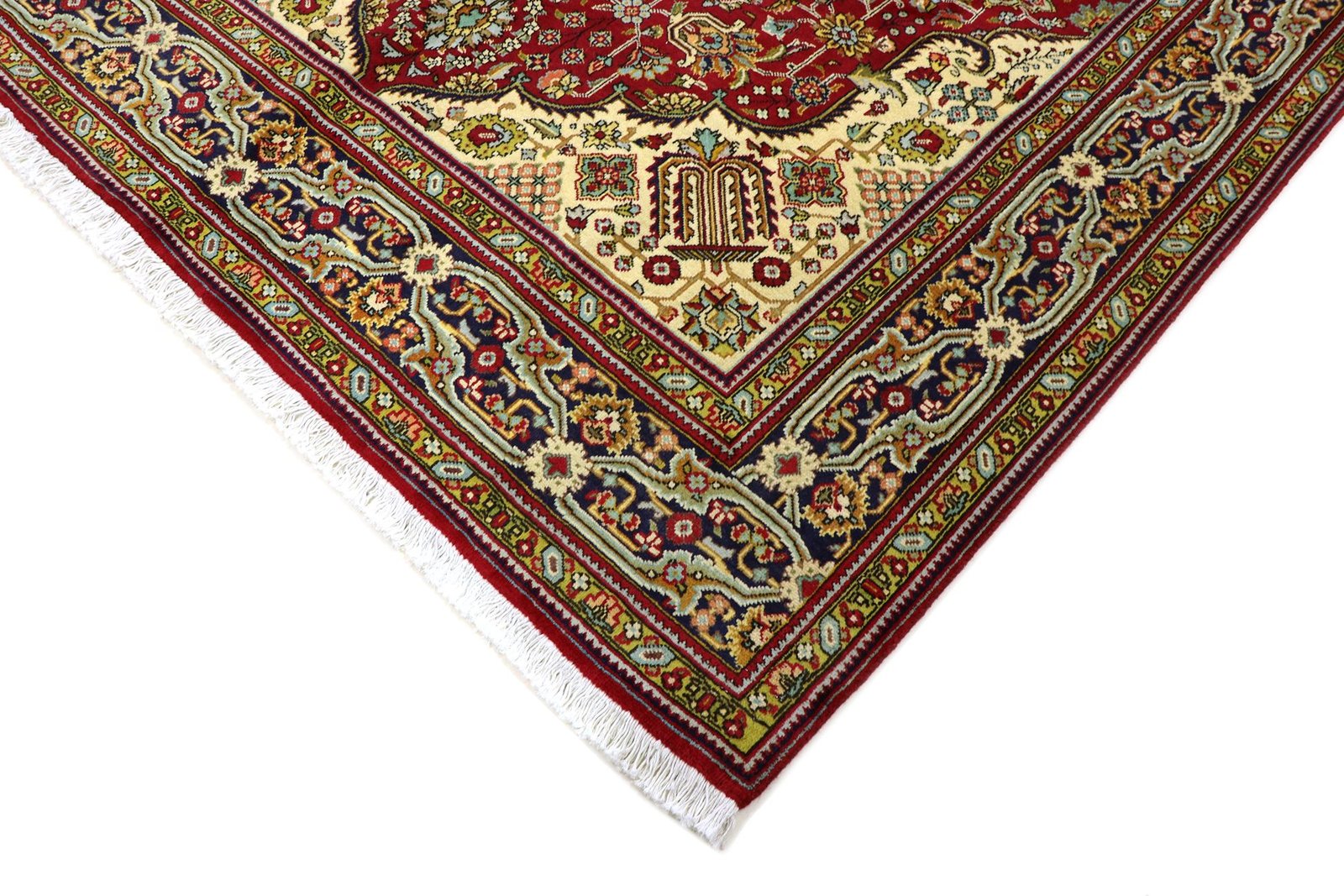 Tabriz, one of the oldest cities in Iran, is famous for its carpets, which range from simple oriental rugs to the finest examples in the world. This city is particularly well known for its fine oriental carpets of the highest quality, which are always knotted from cork wool and silk. Classic oriental carpets from Tabriz are hand-knotted unique pieces that are distinctive due to their traditional patterns, which have been passed down through generations. The region of origin influences the manufacturing method, the material and the motifs of the carpets, which is particularly the case with high-quality Persian carpets. These works of art captivate with their first-class materials, knot density, unique colour harmonies and traditional designs. Whether made of precious silk or soft cork wool, a Tabriz carpet adds a special touch to any room.