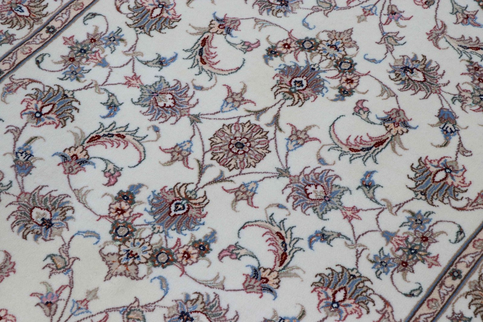 Tabriz, one of Iran’s oldest cities, is known worldwide for its oriental carpets, which range from simple to the finest examples. Carpets from Tabriz are famous for their exquisite quality and are traditionally knotted from cork wool and silk. Classic oriental carpets from Tabriz are unique, hand-knotted pieces whose characteristic patterns have been passed down from generation to generation. The manufacturing method, material and motifs of a carpet are strongly influenced by its origin, which is particularly true of the high-quality Persian carpets from Tabriz. These works of art are characterised by first-class materials, high knot density, unique colour harmonies and traditional designs. Whether made of precious silk or soft cork wool, a Tabriz carpet adds a special and elegant touch to any room, reflecting timeless beauty and craftsmanship.
