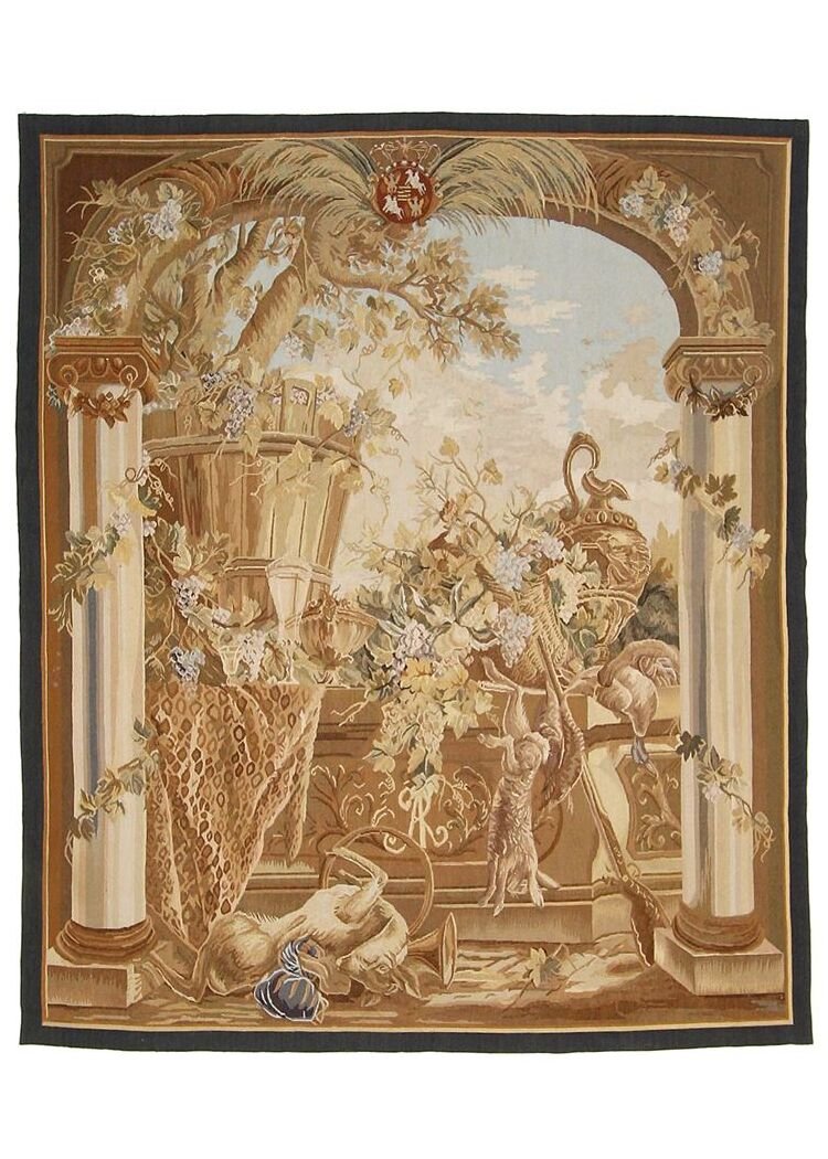 Obisson is a type of kilim, obisson, made in France and Belgium in the seventeenth and eighteenth centuries, which is woven and nail embroidered, and most were wool on wool with pictorial motifs.
