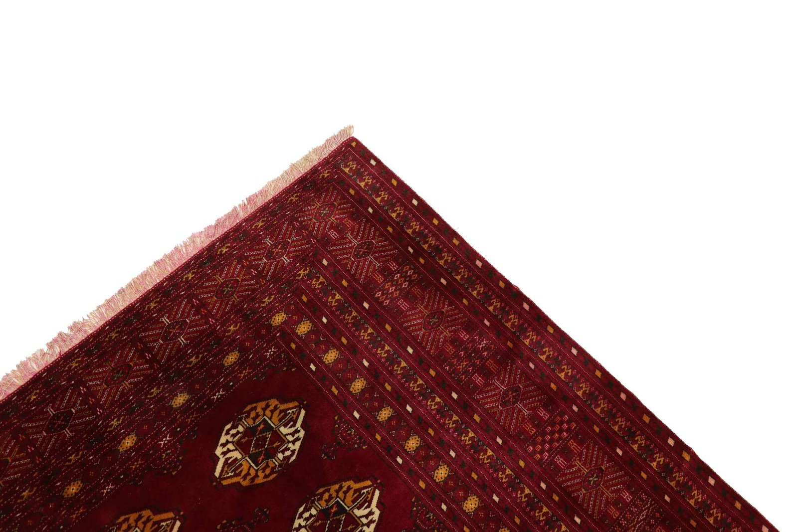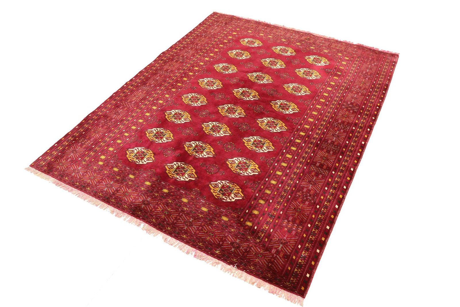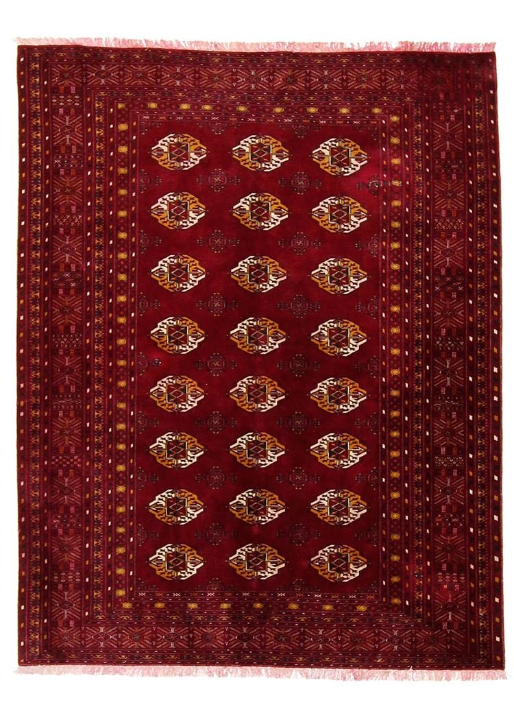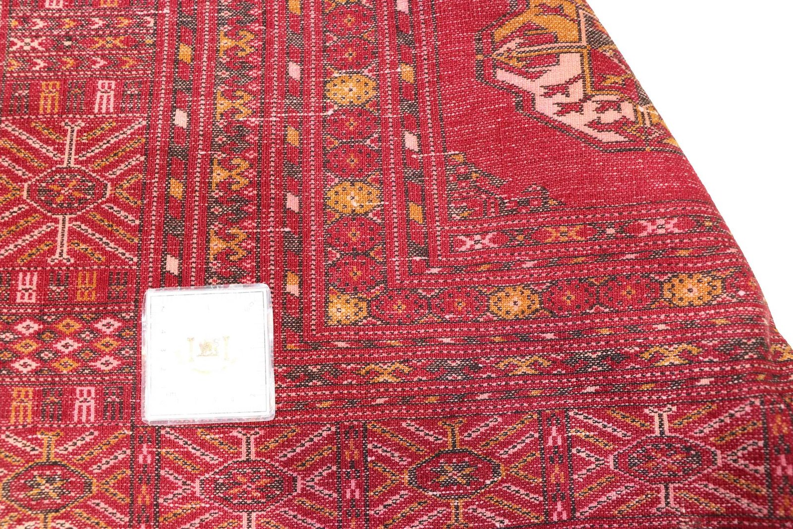 This hand-knotted Turkaman carpet captivates with its exquisite craftsmanship and the use of high-quality sheep’s wool, which is known for its natural oiliness. The warm, dark colours and traditional patterns reflect the rich culture of the Turkmen people and lend every room a touch of oriental cosiness. Turkaman carpets are characterised by their intense red and brown tones and the wool-on-wool technique, which ensures exceptional robustness. This carpet is not only an expression of artistic tradition, but also a durable and stylish decorative piece that brings oriental flair to your home.