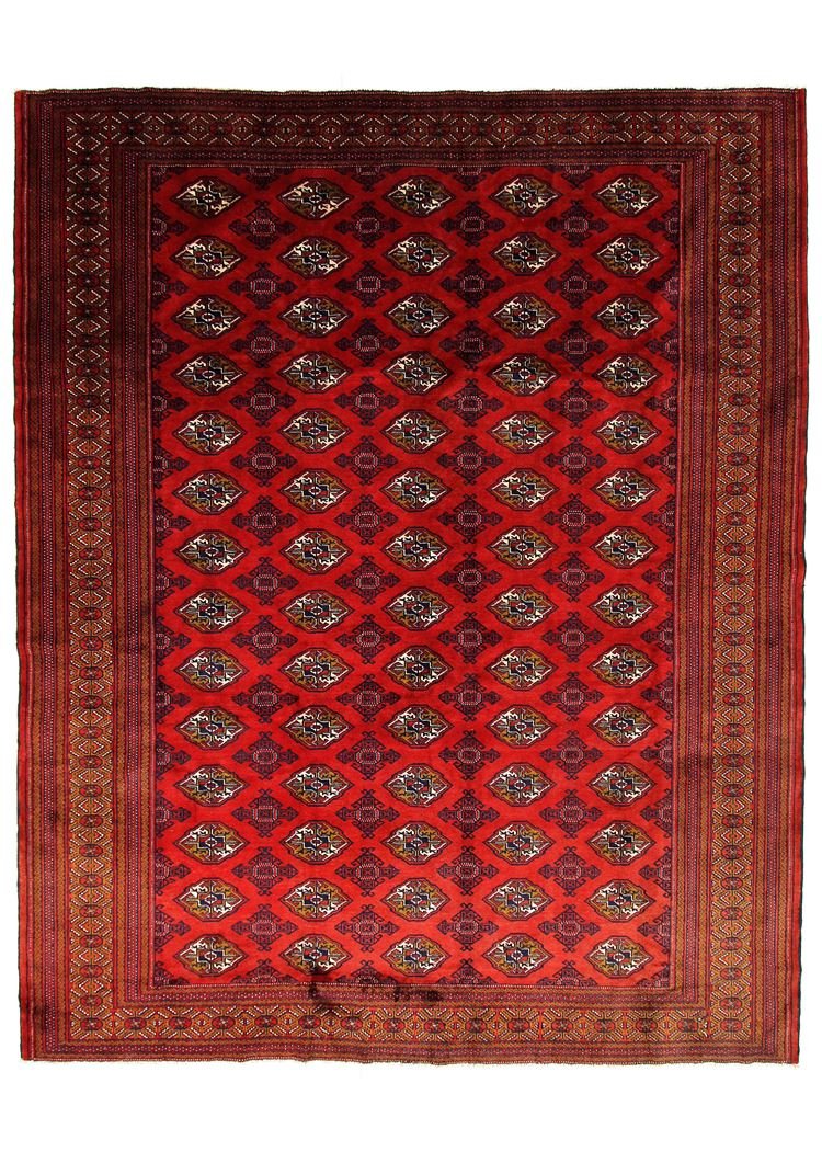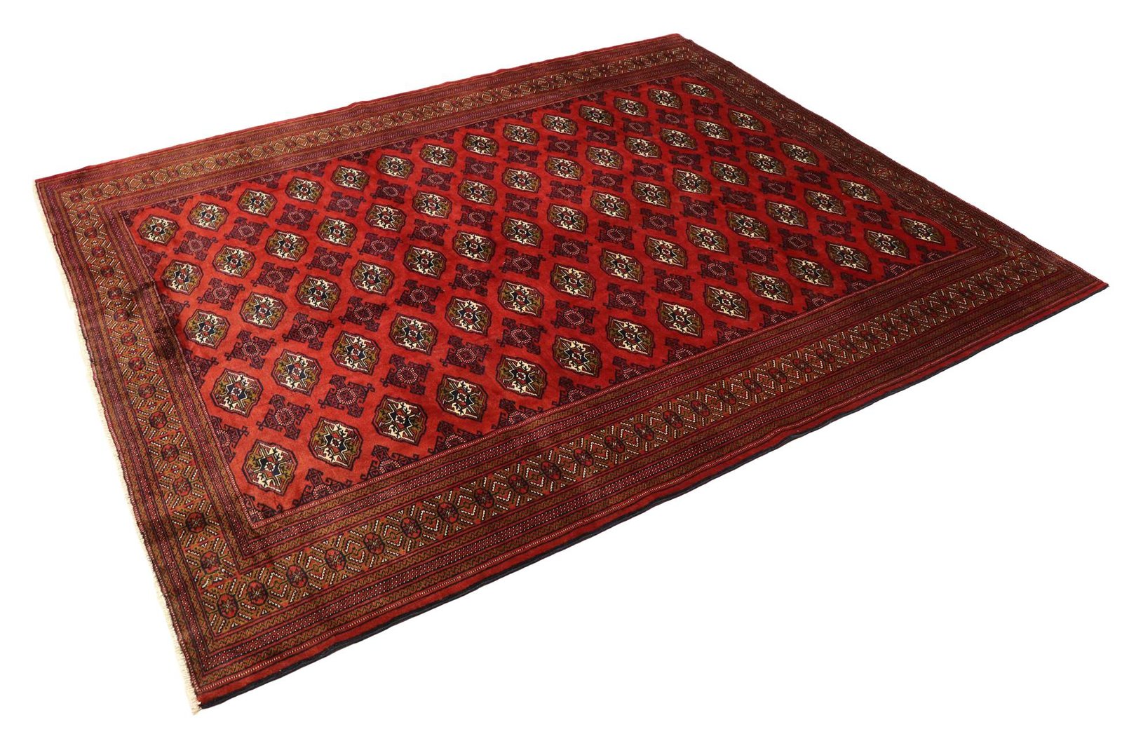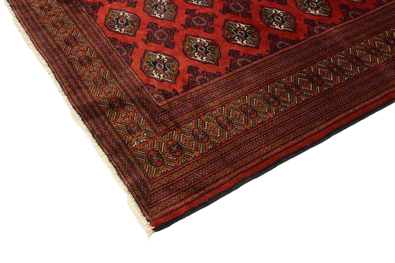 This Turkaman carpet, hand-knotted from high-quality sheep’s wool with a high fat content, impresses with its high standard of workmanship. Its warm, dark colours and traditional patterns are typical of Turkmen culture and bring a touch of the Orient into your home. The robust wool ensures durability, while the characteristic red tones and designs give the carpet a distinctive aesthetic. An outstanding example of craftsmanship, this carpet combines beauty and functionality, ideal for a cosy living atmosphere.
