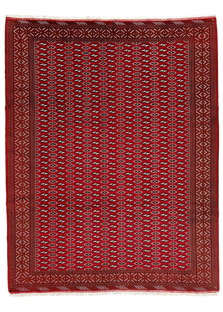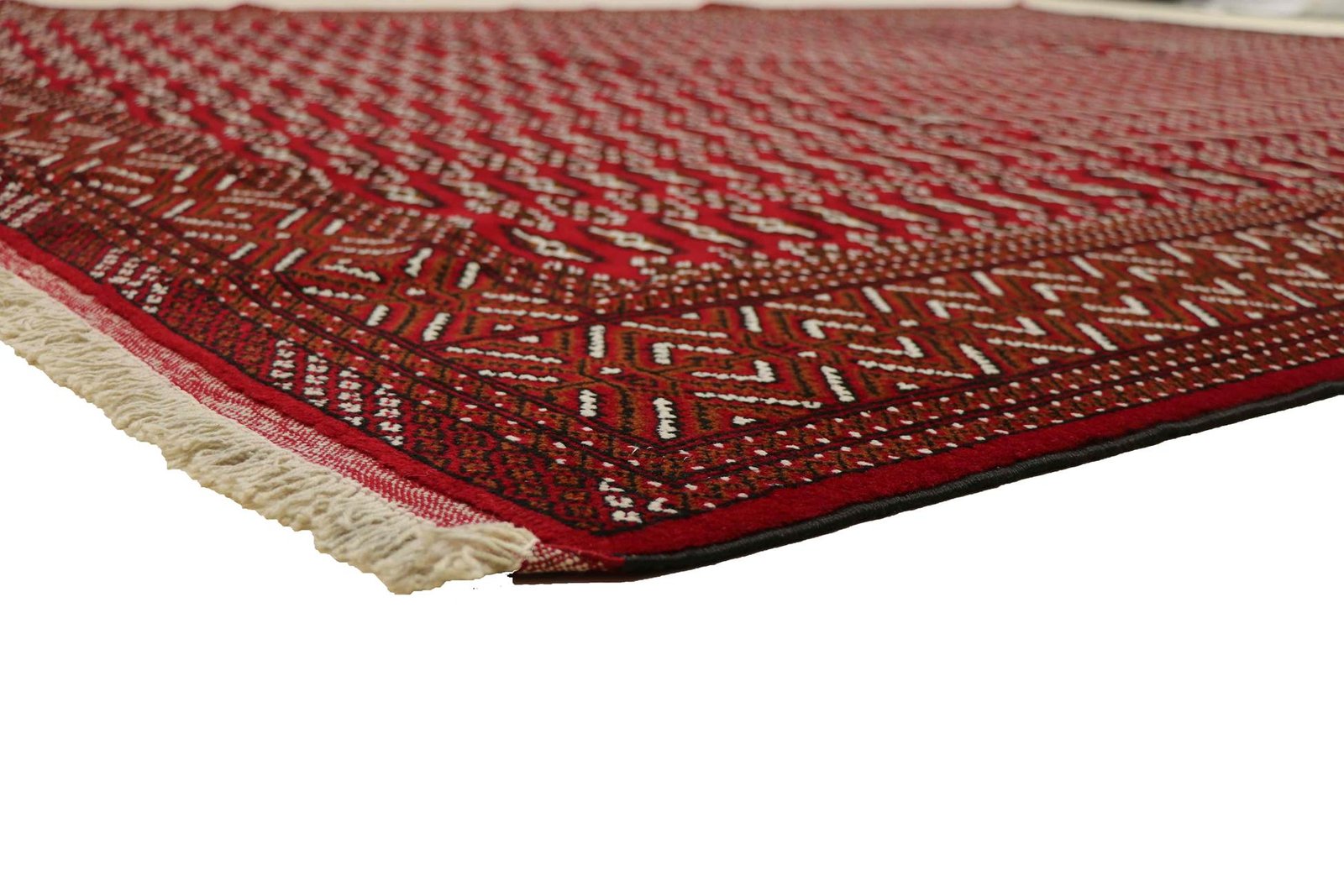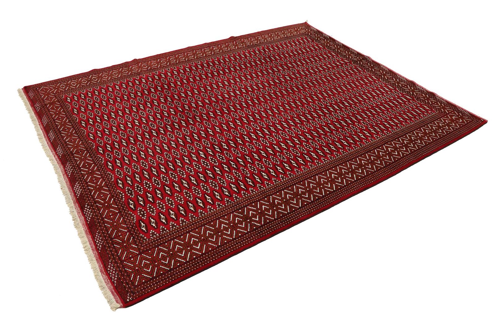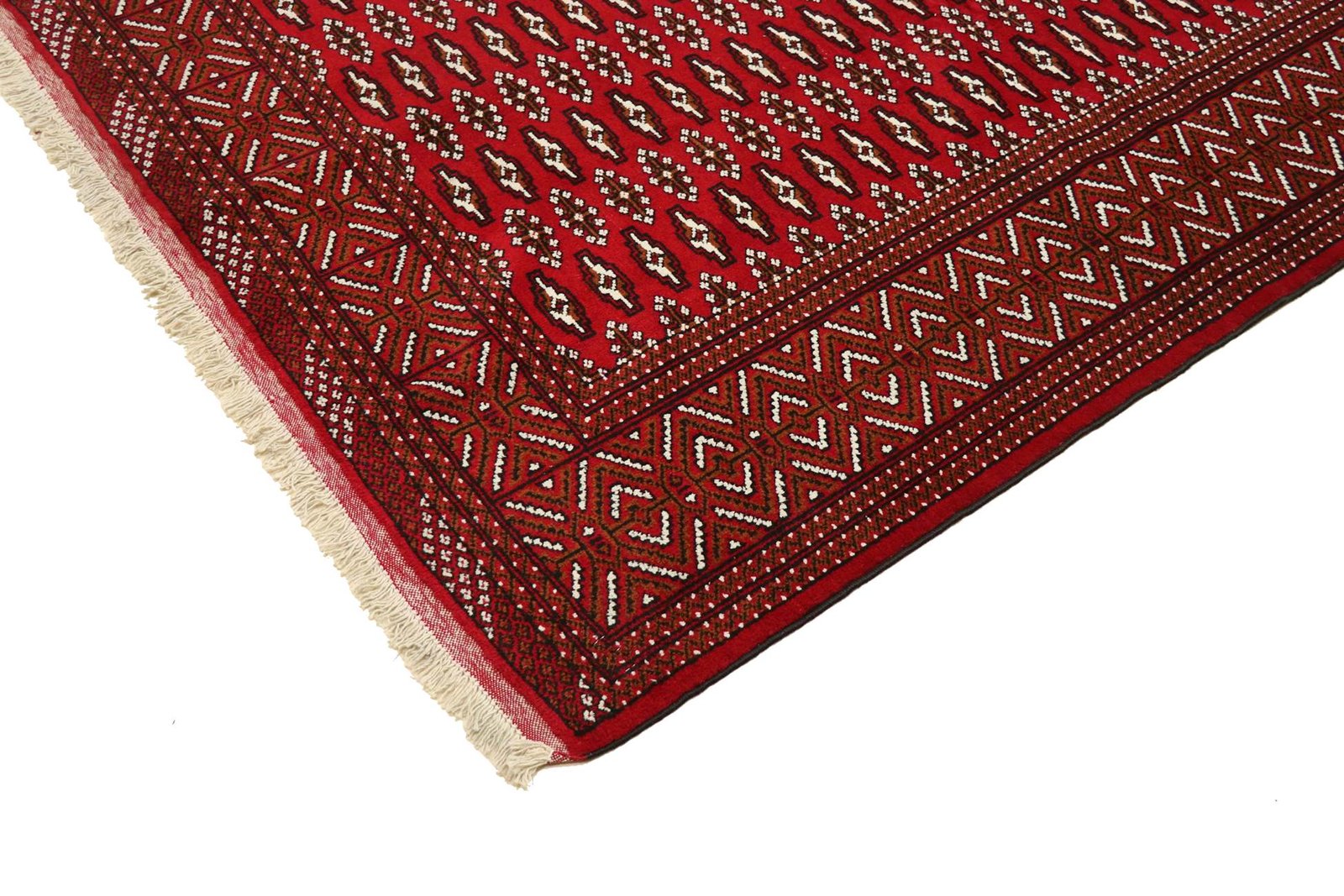 This Turkaman rug was made by hand using traditional methods and impresses with its first-class workmanship and high-quality sheep’s wool with a high fat content. The deep, warm colours reflect the culture of the Turkmen people and lend your living space a touch of oriental elegance and cosiness. Known for its vibrant red and earth tones and characteristic patterns, the carpet combines traditional designs with excellent durability. The robust wool-on-wool construction ensures longevity and resilience, making this oriental carpet particularly attractive. Ideal for anyone who wants to add an authentic, stylish accent to their home.