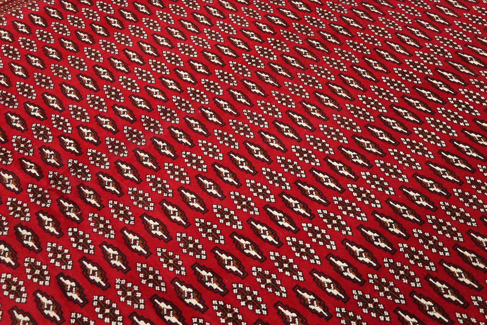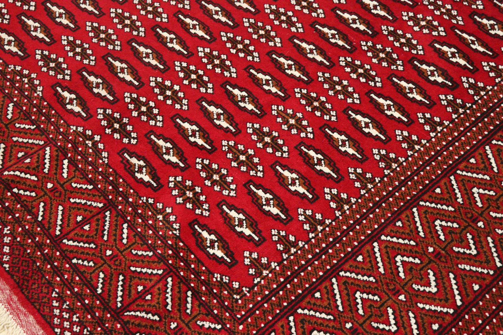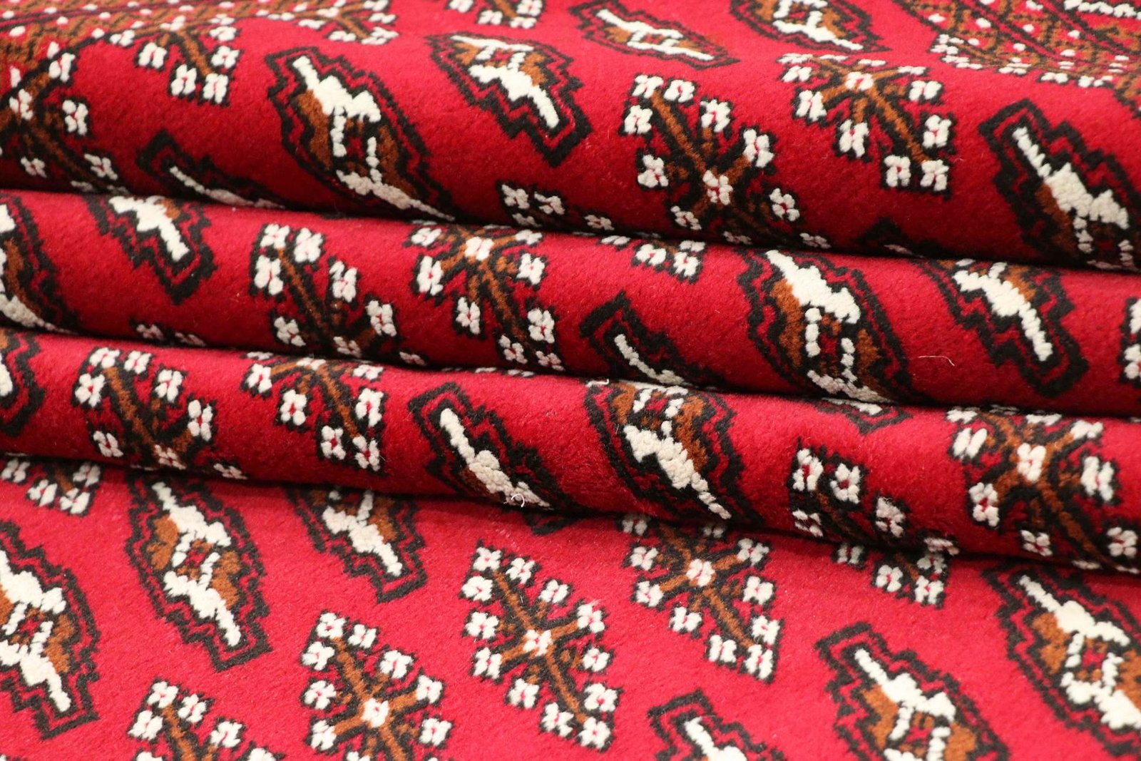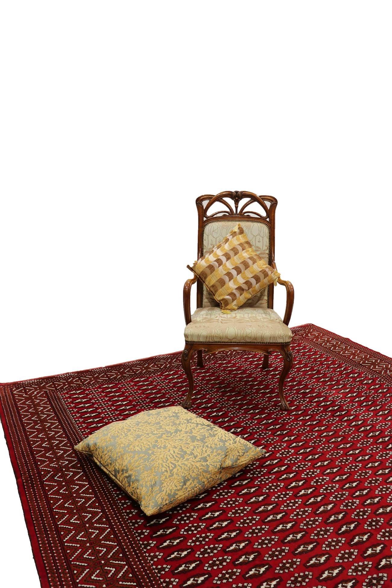 This Turkaman rug was made by hand using traditional methods and impresses with its first-class workmanship and high-quality sheep’s wool with a high fat content. The deep, warm colours reflect the culture of the Turkmen people and lend your living space a touch of oriental elegance and cosiness. Known for its vibrant red and earth tones and characteristic patterns, the carpet combines traditional designs with excellent durability. The robust wool-on-wool construction ensures longevity and resilience, making this oriental carpet particularly attractive. Ideal for anyone who wants to add an authentic, stylish accent to their home.