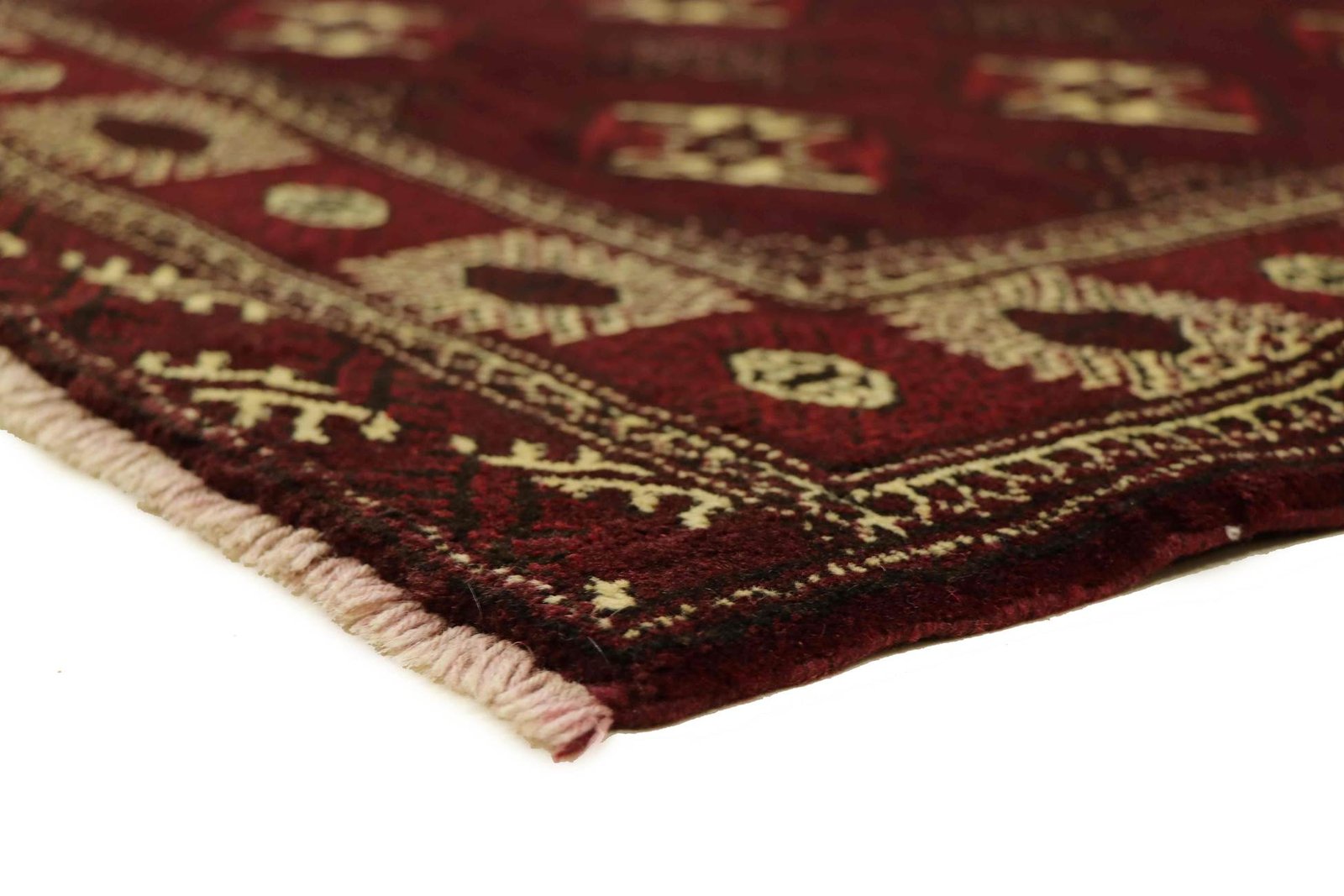 This Turkaman carpet was made by hand using traditional methods and is characterised by the highest manufacturing standards and the use of high-quality sheep’s wool with a high fat content. The dark, warm colours reflect the rich culture of the Turkmen people and lend your living space an elegant, oriental touch. Known for their magnificent reds and patterns, Turkaman carpets are true classics that are durable and long-lasting thanks to their robust wool-on-wool construction. They not only bring visual beauty to your home, but also a cosy comfort.