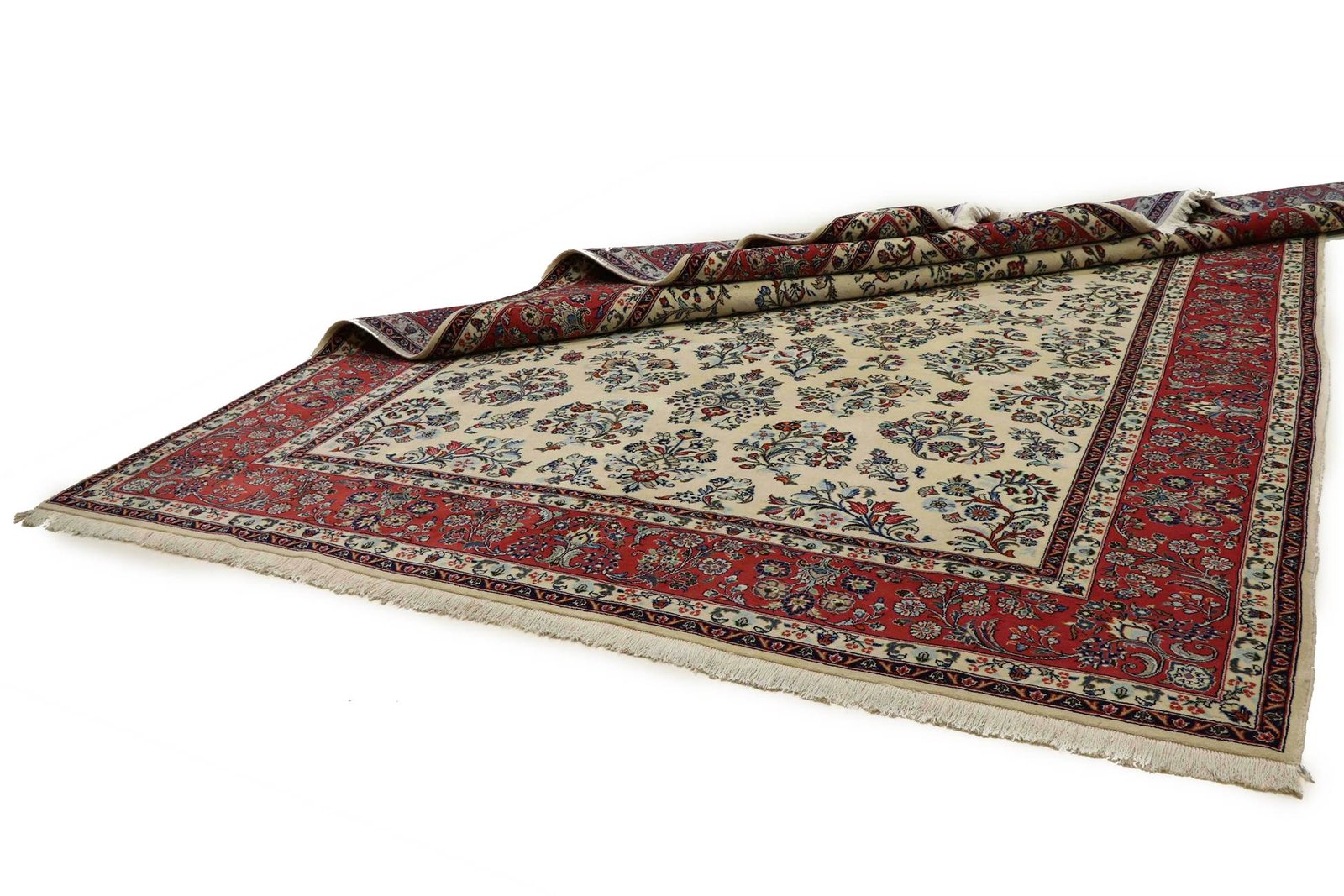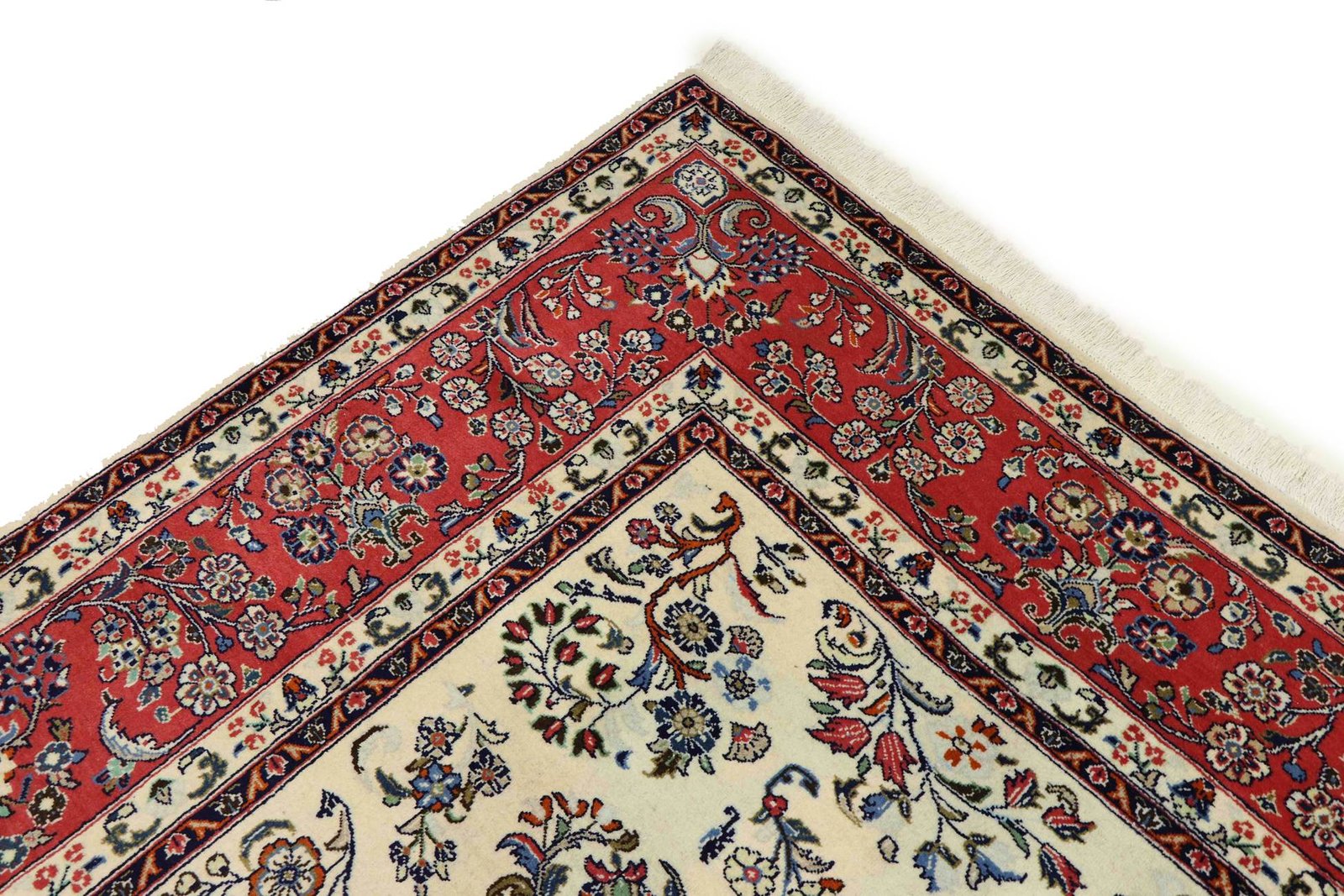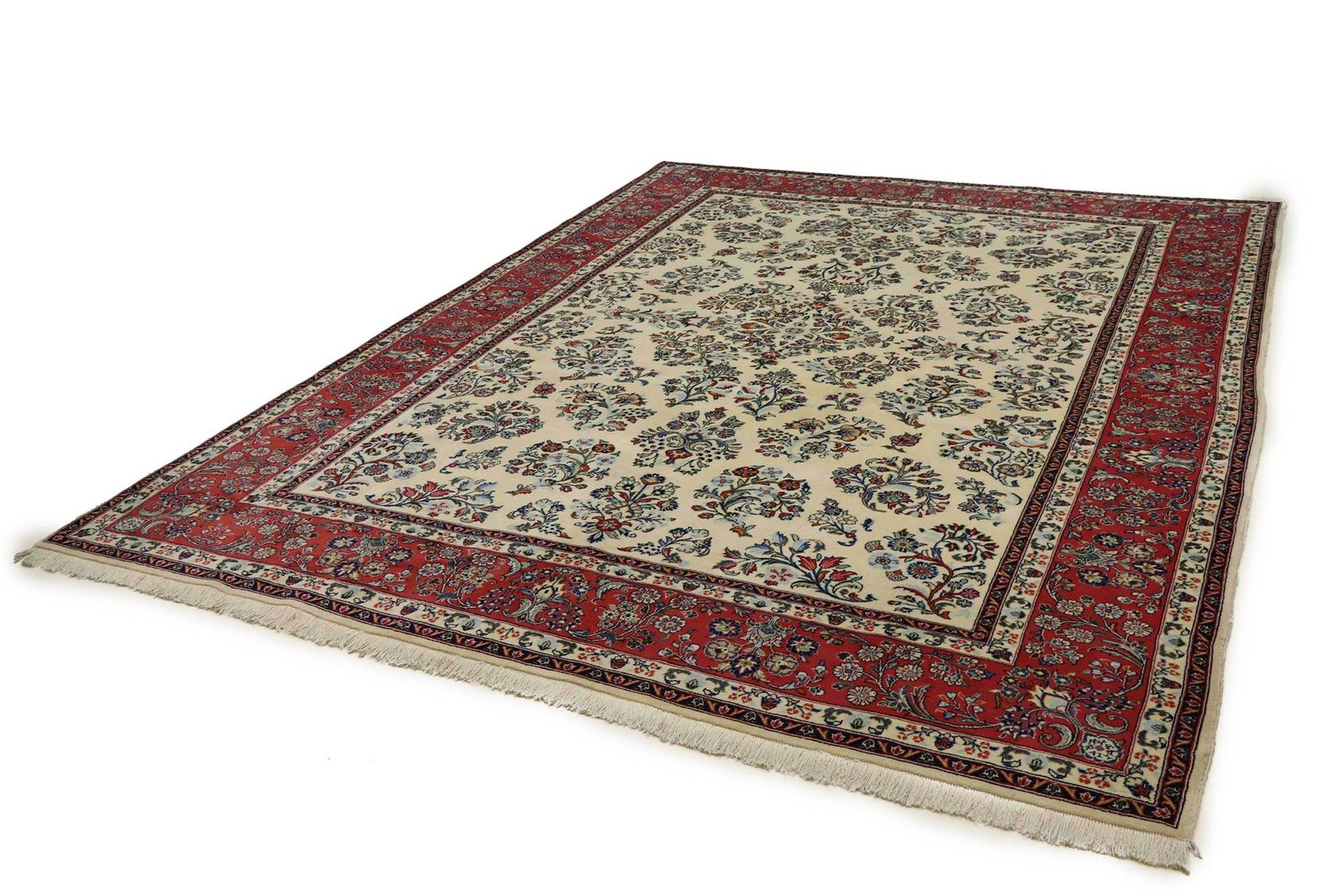 The Yazd carpet is one of the oldest and most exquisite Oriental carpets, known for its muted red tones and tranquil patterns. It impressively represents the multifaceted culture of the Iranian city of Yazd. With its detailed design, the carpet offers new subtleties with every glance, while the vibrant colours create a warm, inviting atmosphere. Hand-knotted from carefully spun sheep’s wool, it not only offers visual beauty, but also a pleasantly soft texture that pampers your feet. This carpet combines traditional craftsmanship with luxurious comfort and brings a touch of timeless elegance to your home.