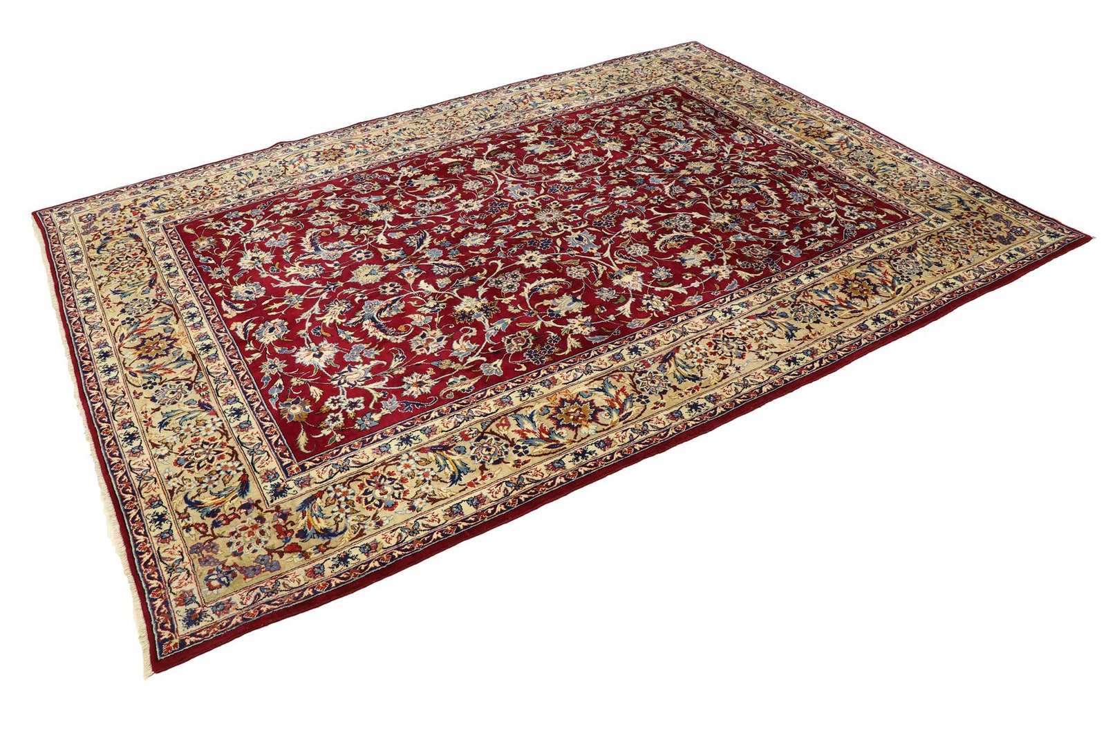 The Yazd carpet is one of the oldest and most exquisite Oriental carpets and is known for its muted red tones and calm patterns. It impressively embodies the diverse culture of the Iranian city of Yazd. With its detailed design, the carpet reveals new subtleties with every glance, while the vibrant colours create a warm and inviting atmosphere. Hand-knotted from carefully spun sheep’s wool, it offers not only visual beauty but also a pleasantly soft texture that pampers your feet. This carpet combines traditional craftsmanship with luxurious comfort and brings a touch of timeless elegance to your home.