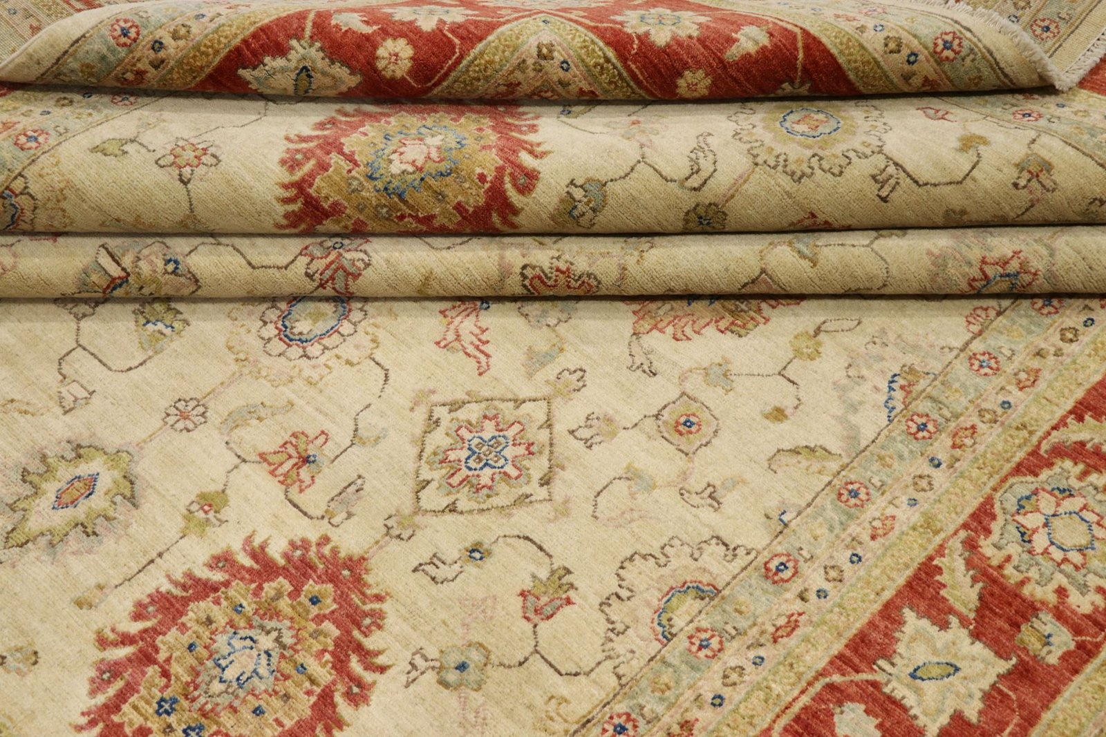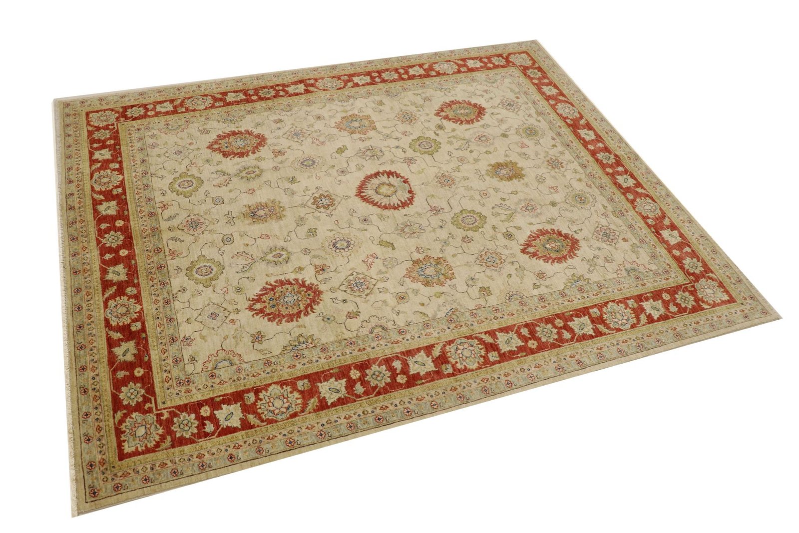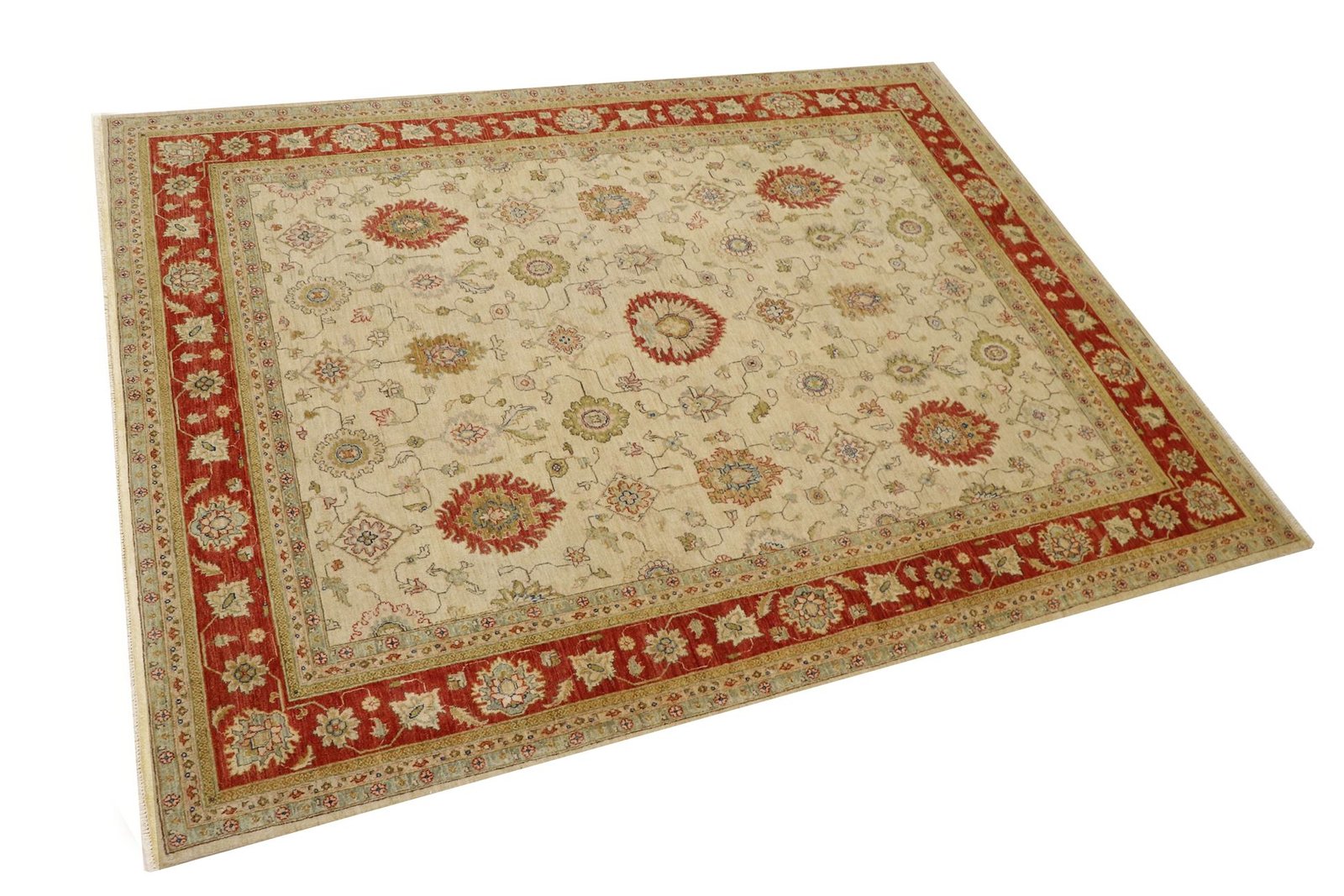 Ziegler carpets are knotted in Afghanistan and feature beautiful, tranquil patterns in light colours.